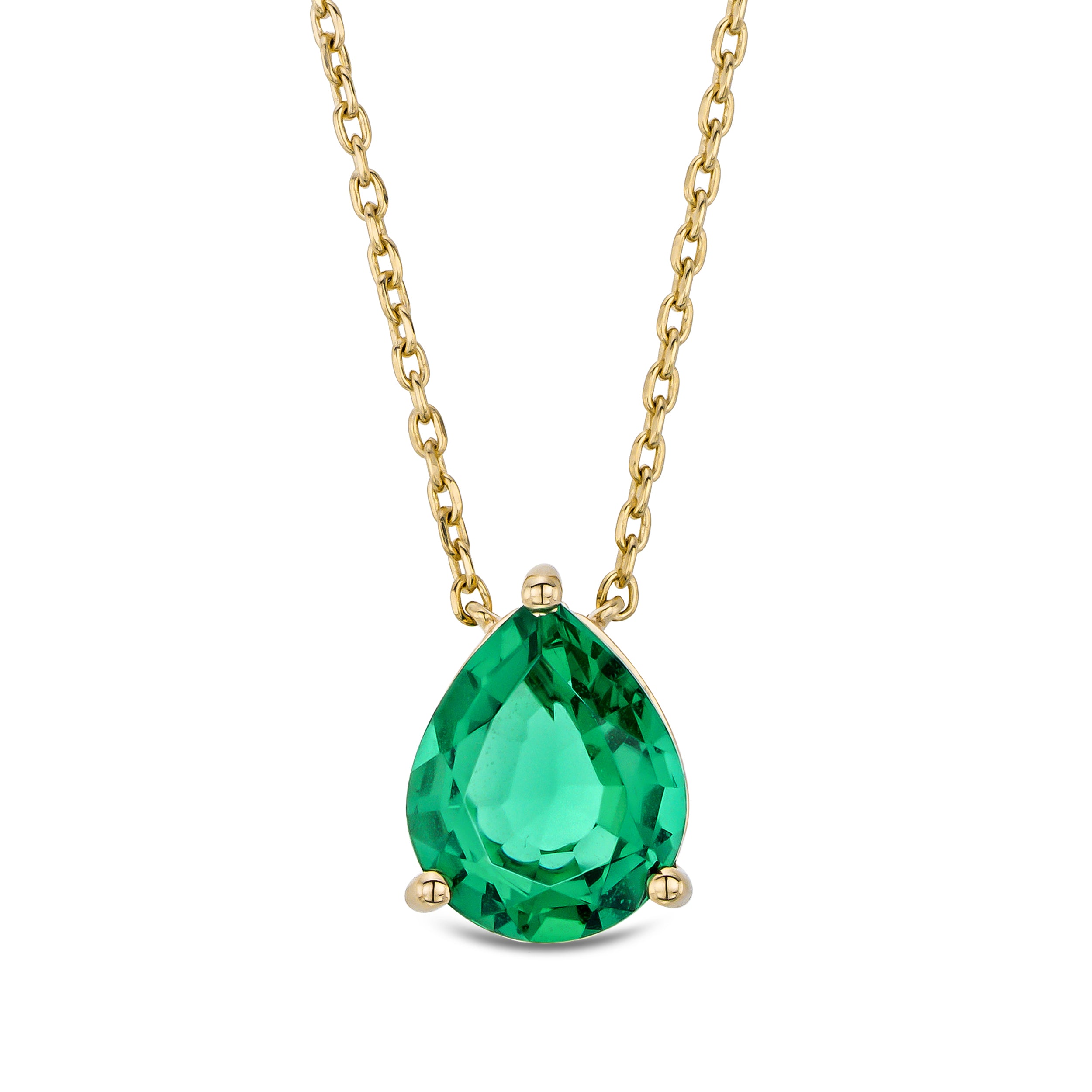 Astra 2.40ct Lab Emerald and Diamond Solitaire Pear Cut Necklace in 18K Gold Vermeil