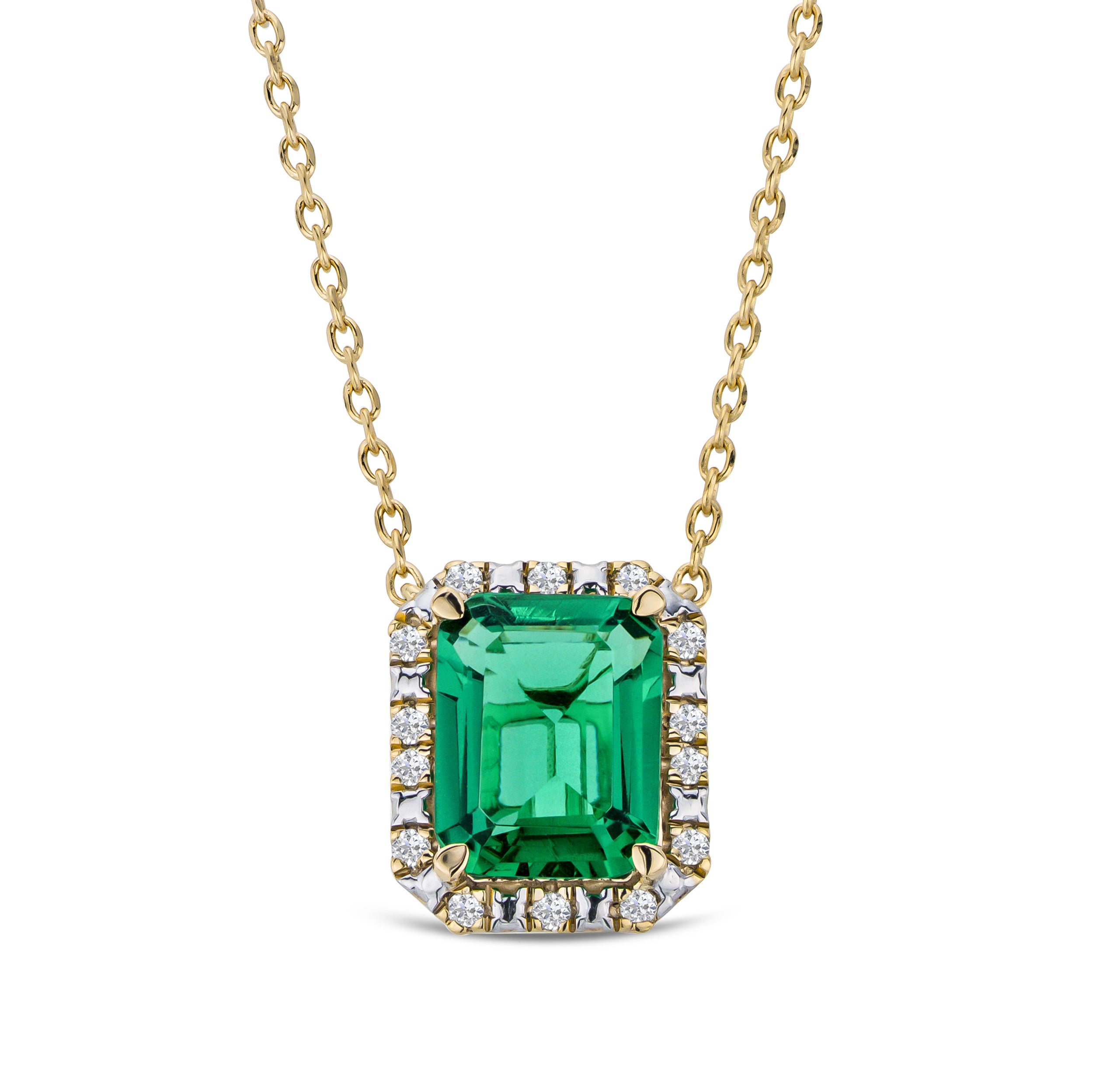 Astra 1.50ct Lab Emerald and Diamond Halo Octagon Cut Necklace in 18K Gold Vermeil
