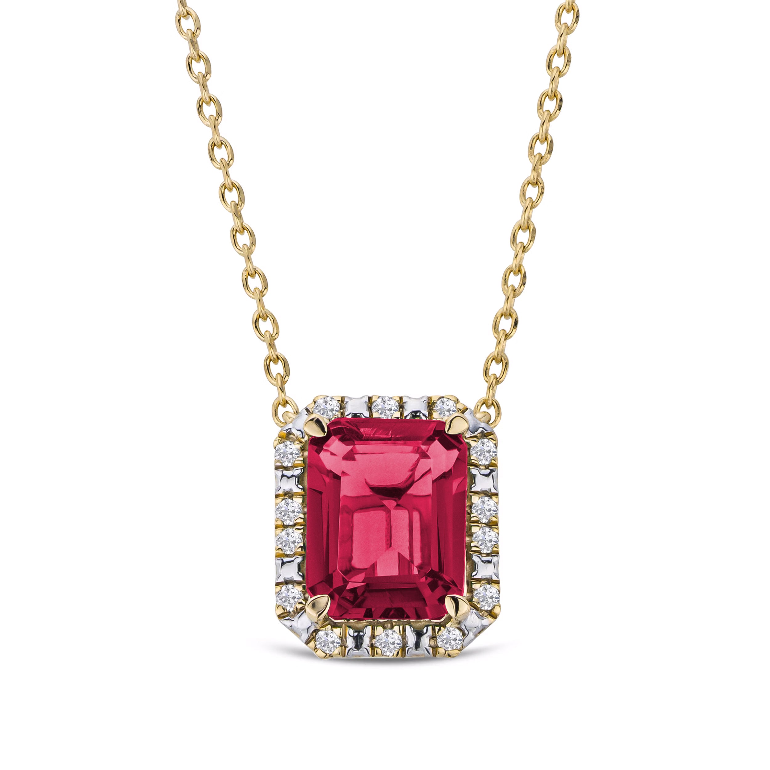 Astra 1.80ct Lab Ruby and Diamond Halo Octagon Cut Necklace in Silver