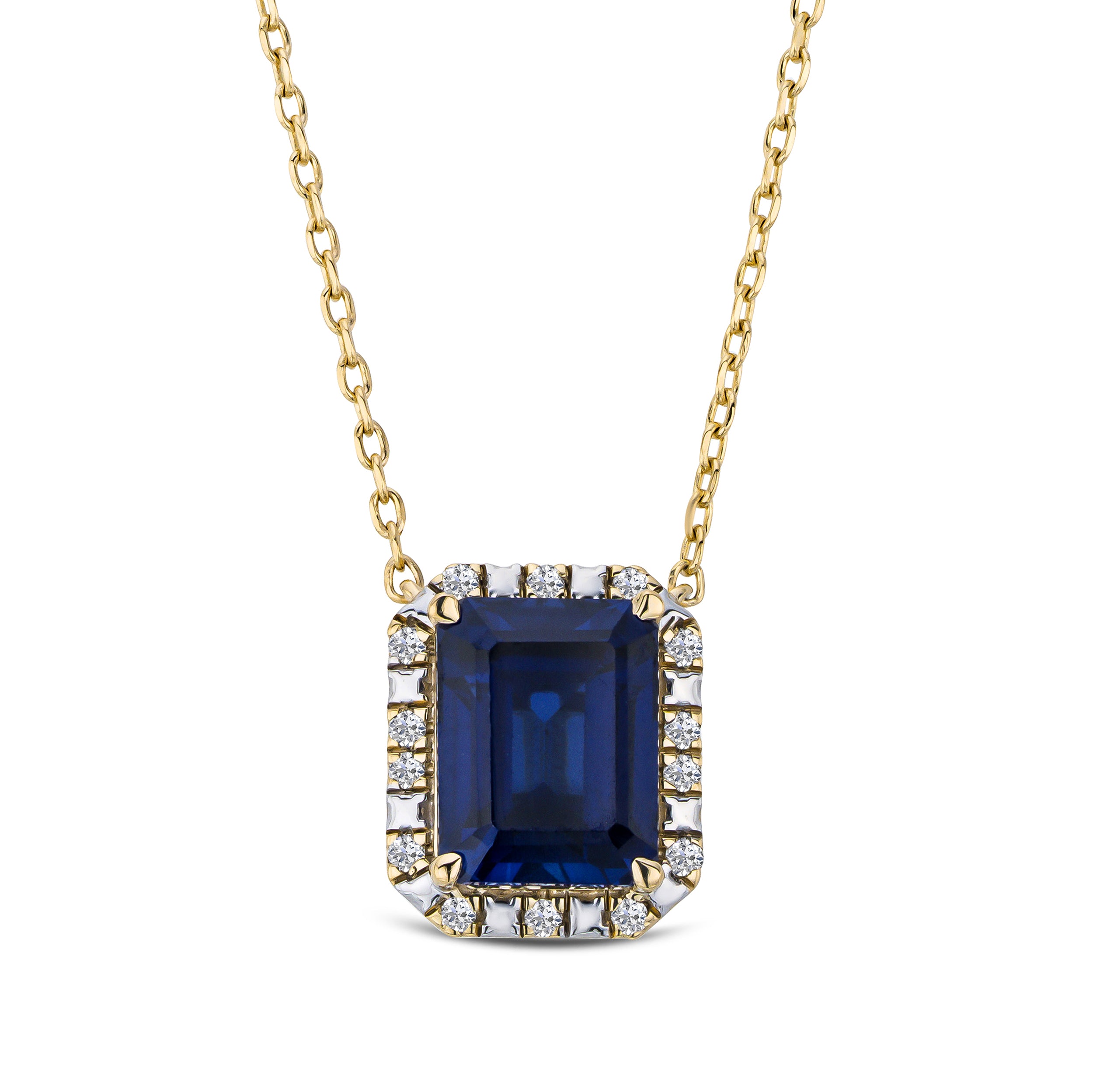 Astra 2.00ct Lab Sapphire and Diamond Halo Octagon Cut Necklace in 18K Gold Vermeil