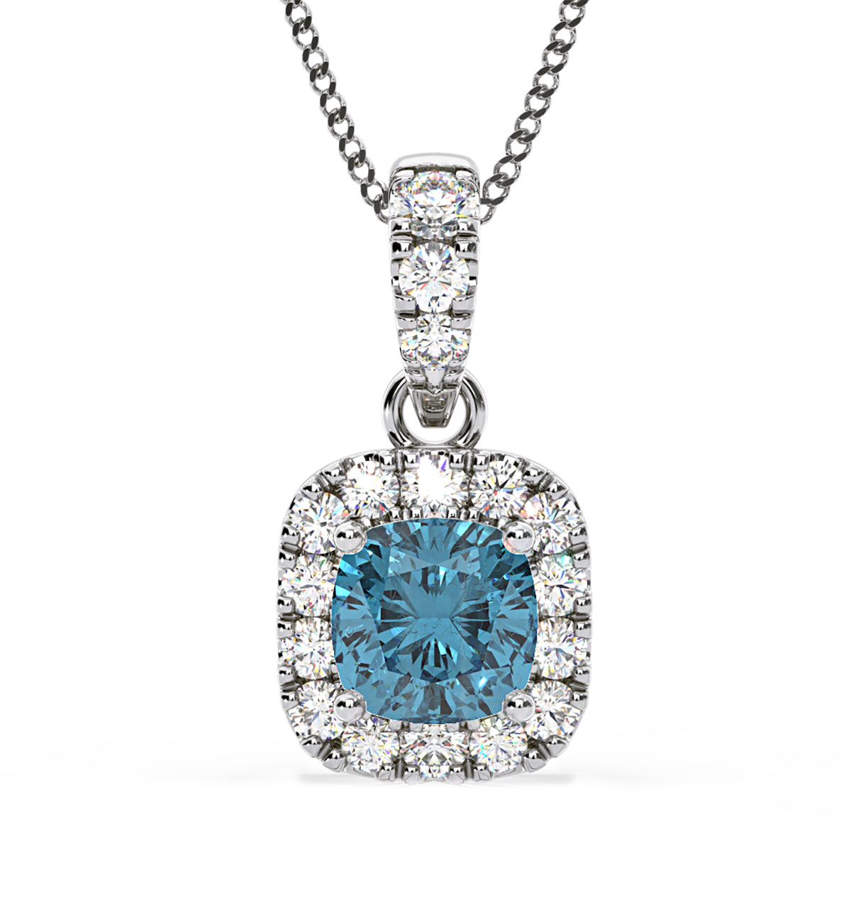 Beatrice Blue Lab Diamond Cushion Cut Necklace 0.70ct in 18K White Gold – Elara Collection