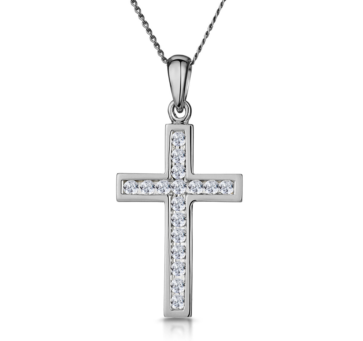Cross Pendant Necklace 0.25CT Diamond in 9K White Gold