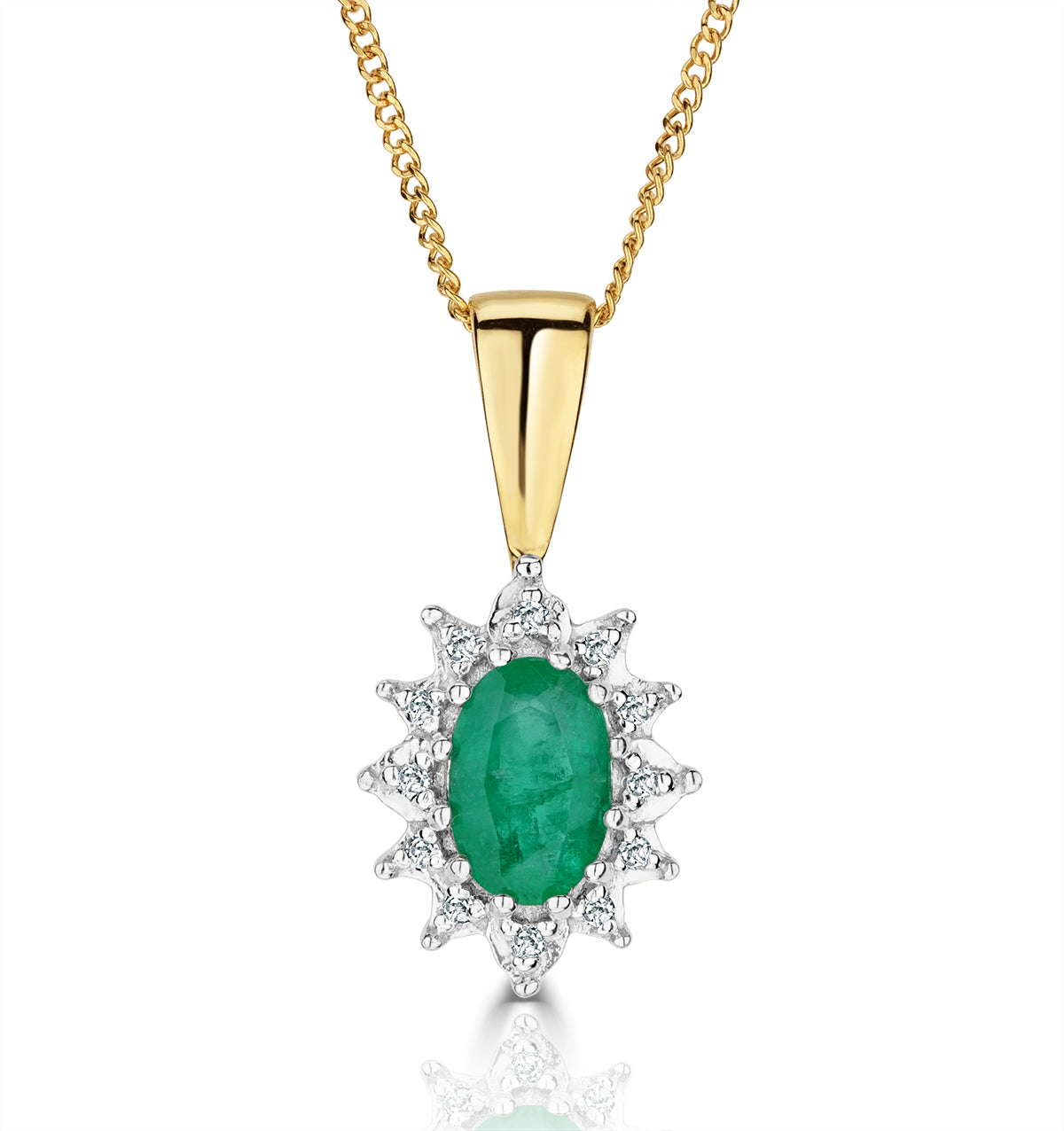 Emerald 0.43CT And Diamond 9K Yellow Gold Pendant Necklace