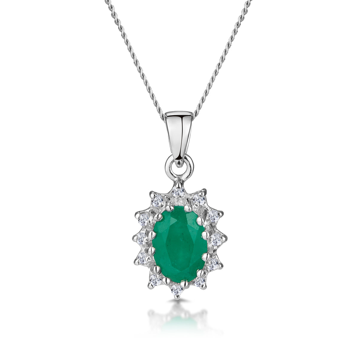 Emerald 0.80CT And Diamond 9K White Gold Pendant Necklace