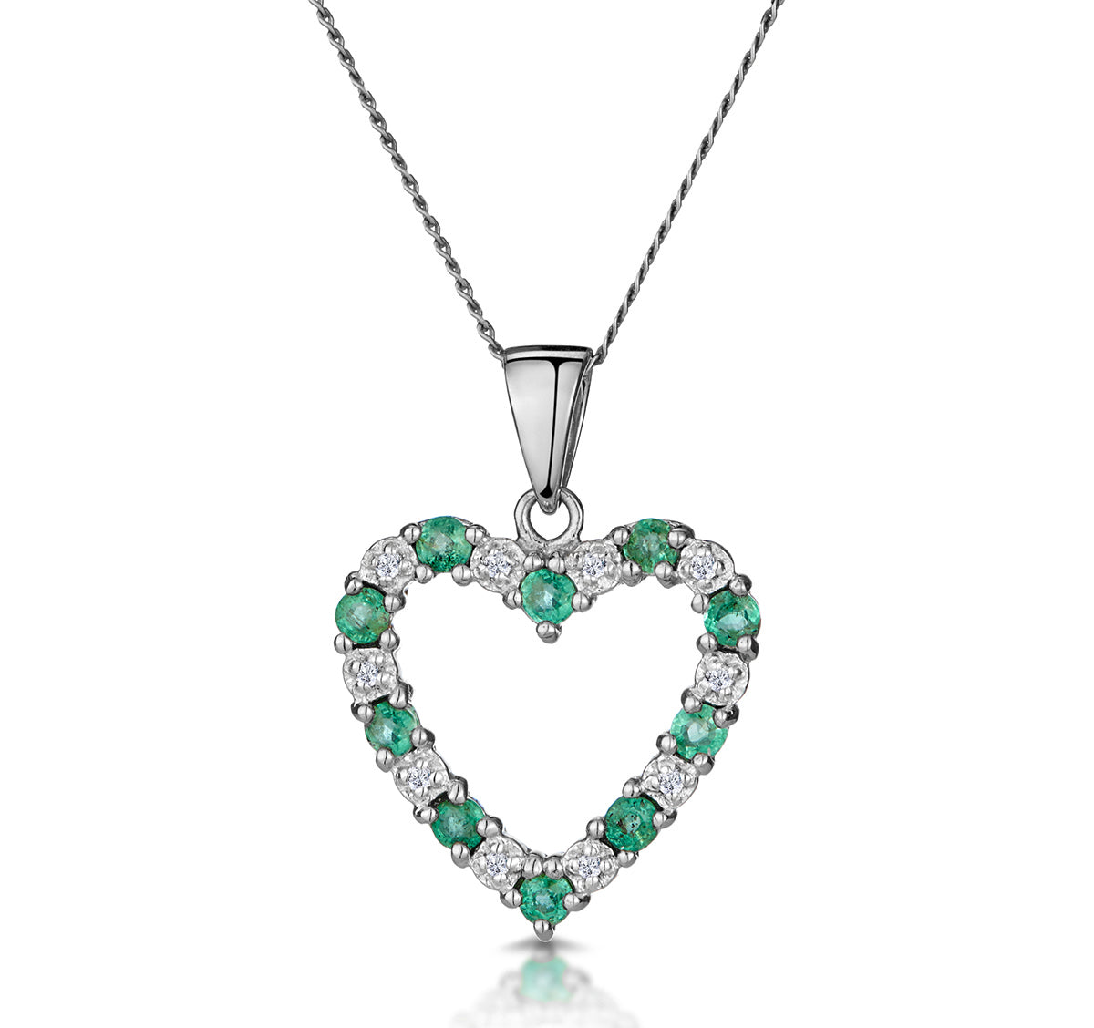 Emerald 0.54CT And Diamond 9K White Gold Heart Pendant Necklace
