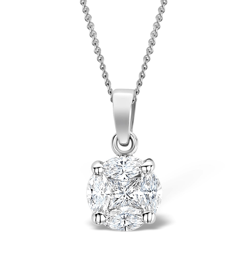 Galileo 0.50ct Solitaire Look Diamond 0.18ct 18K White Gold Necklace