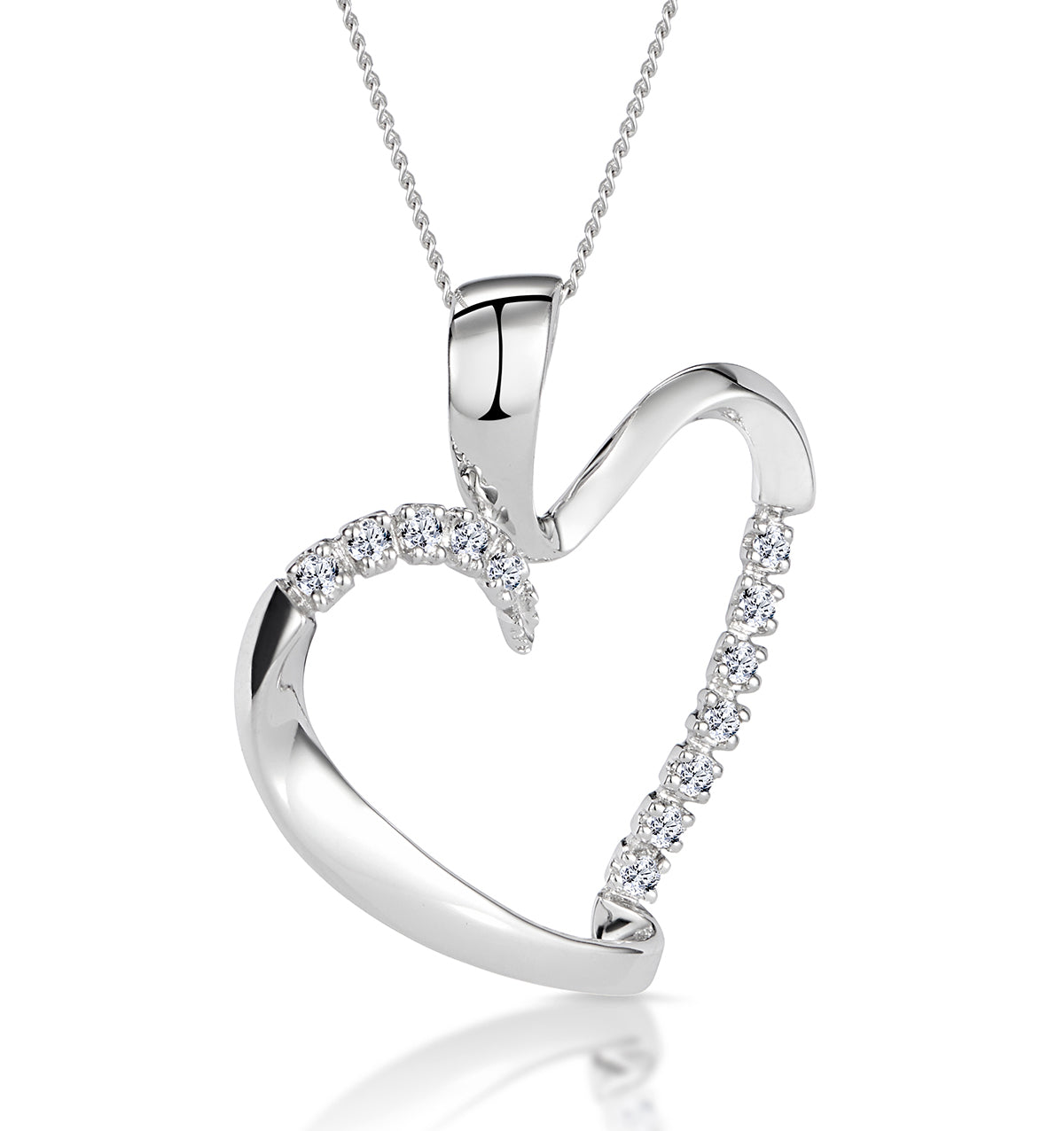 Heart Pendant Necklace 0.15ct Diamond 9K White Gold
