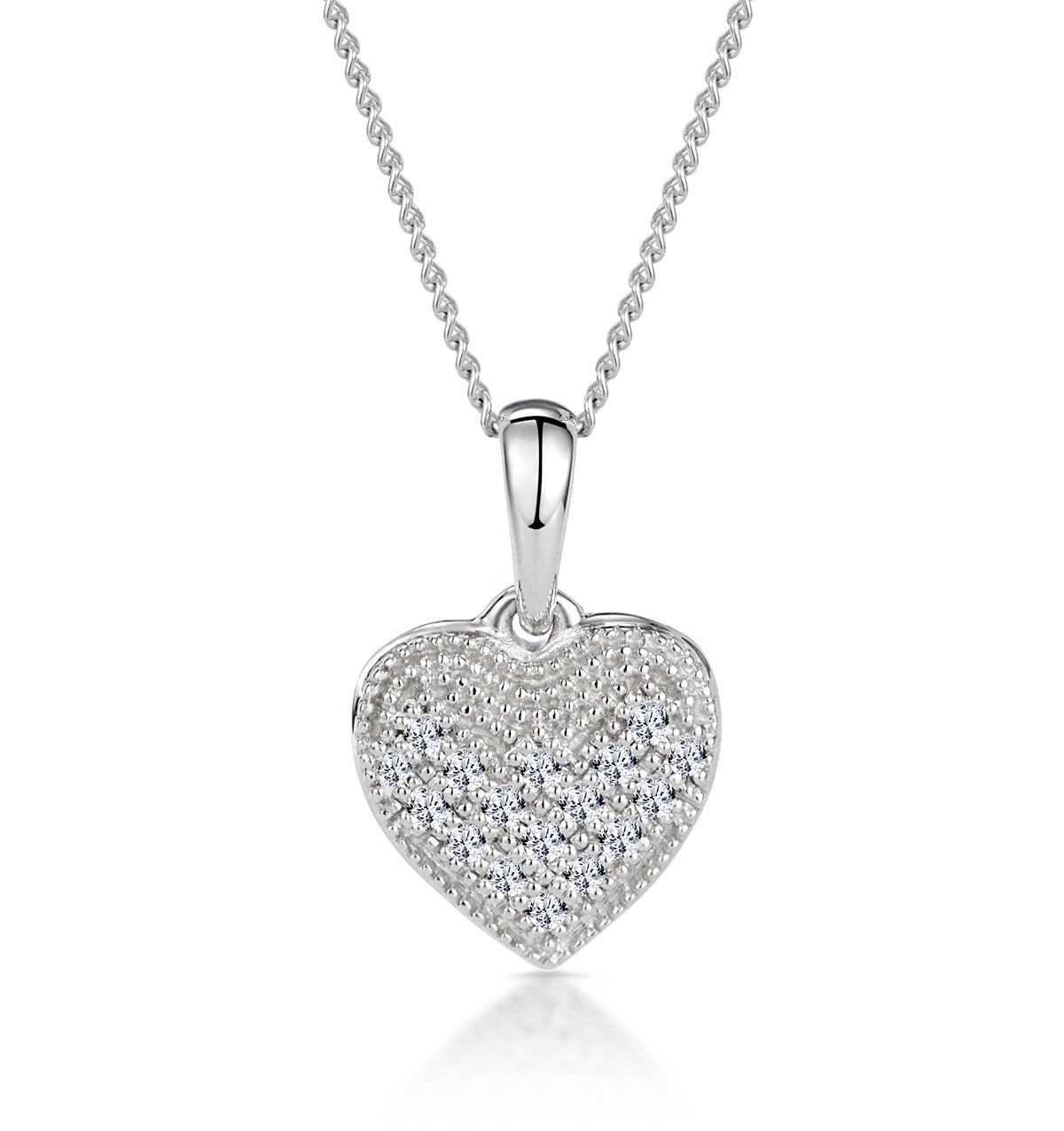 Heart Pendant Necklace 0.10ct Diamond 9K White Gold