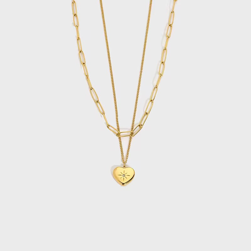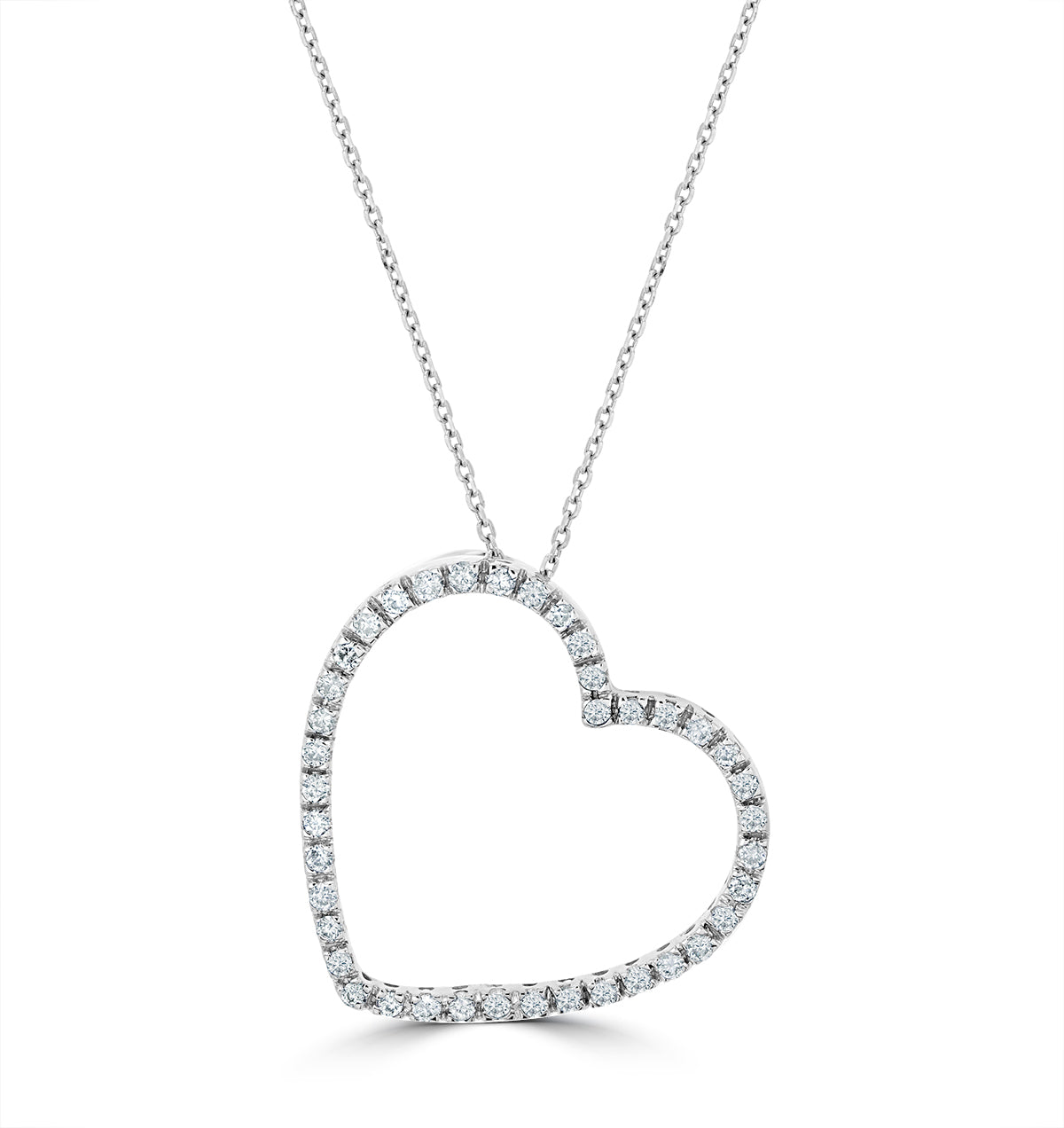 Heart Pendant Necklace 0.03ct Diamond 18K White Gold