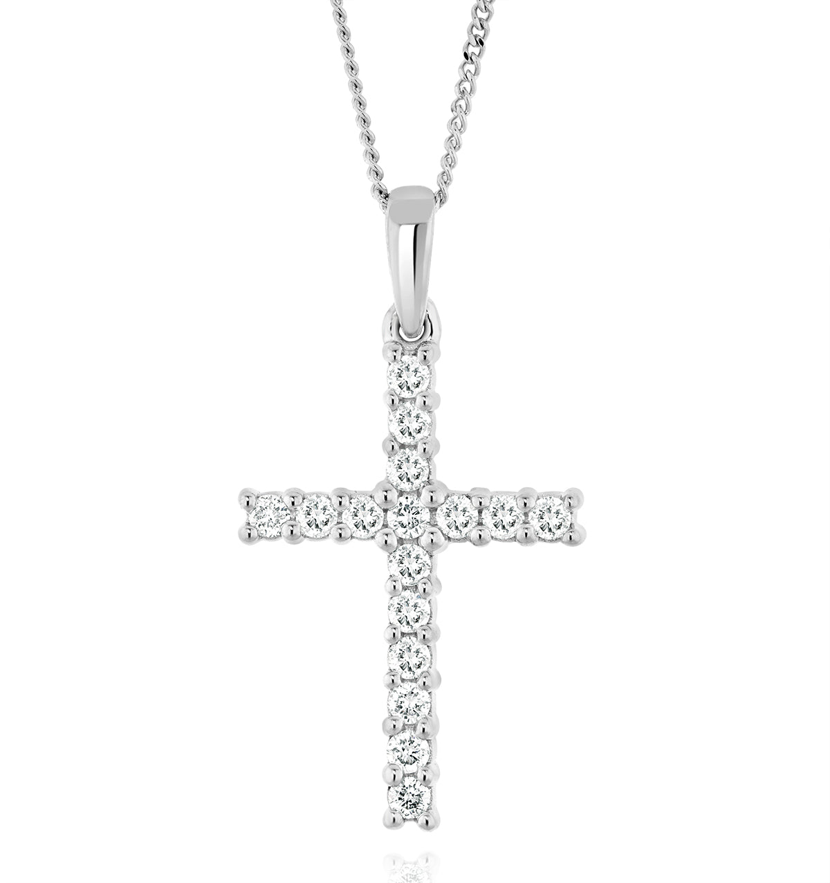 Lab Diamond Cross Pendant Necklace Claw Set 0.25ct H/Si 9K White Gold