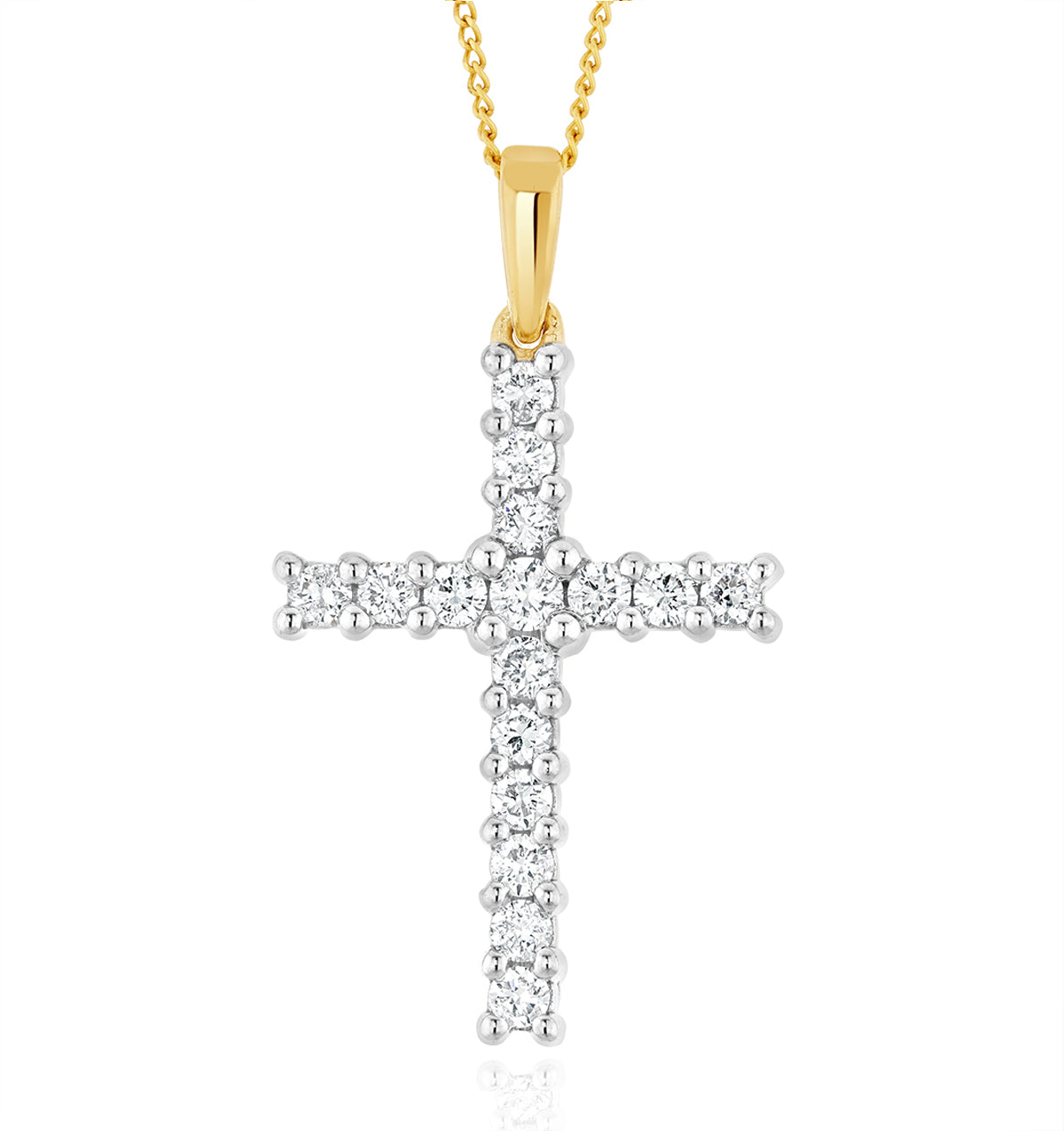 Lab Diamond Cross Pendant Necklace Claw Set 0.25ct H/Si in 9K Gold