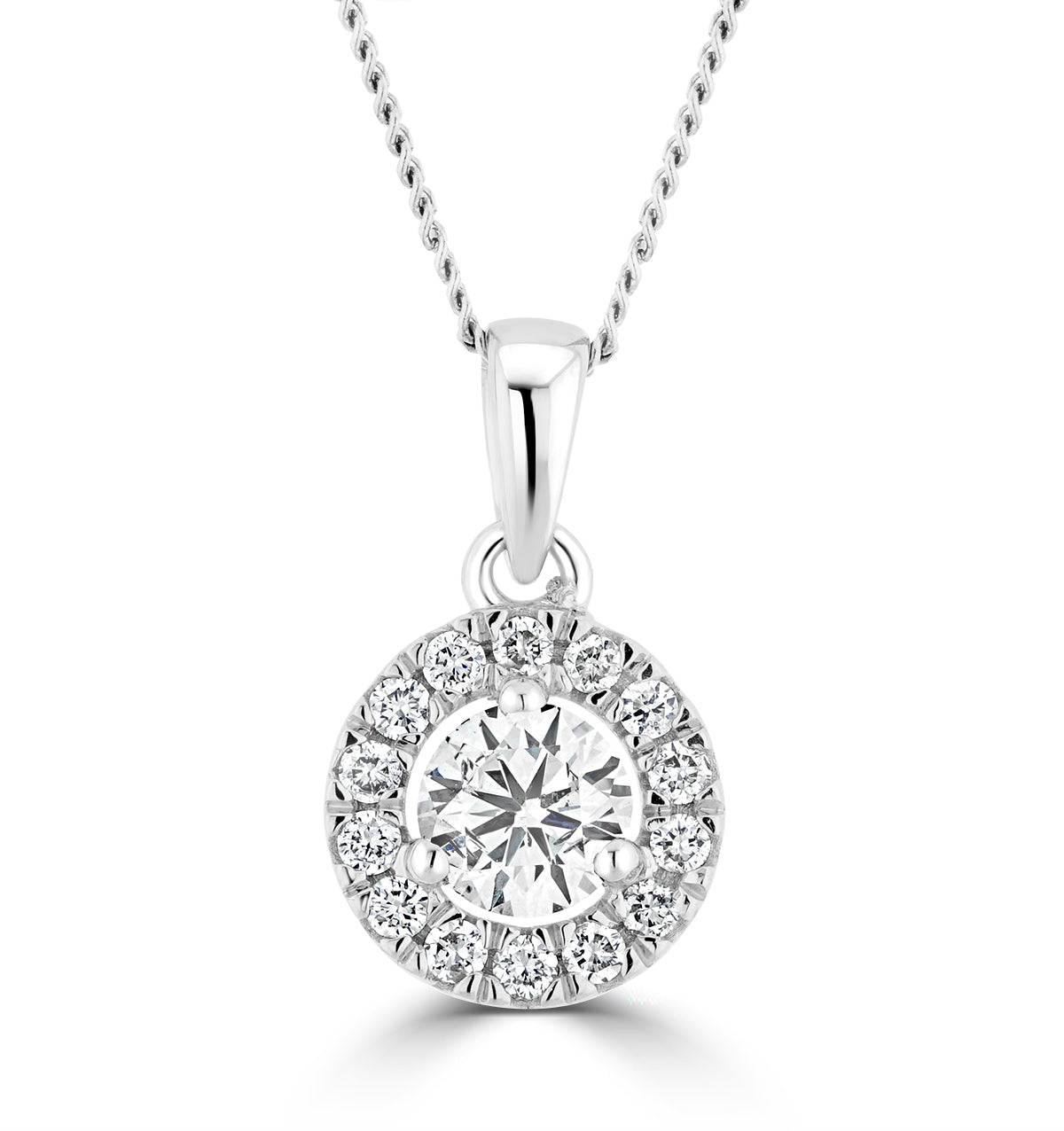 Lab Diamond Halo Necklace Pendant 0.50ct H/Si Set in 9K White Gold
