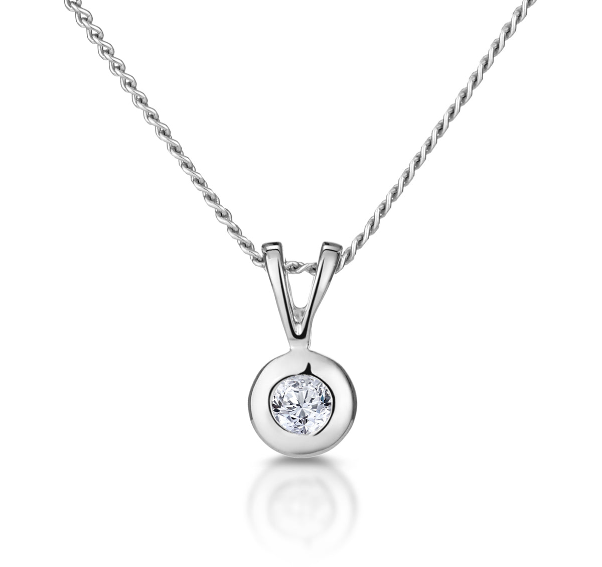 Lab Diamond Solitaire Pendant Necklace 0.05CT in 9K White Gold