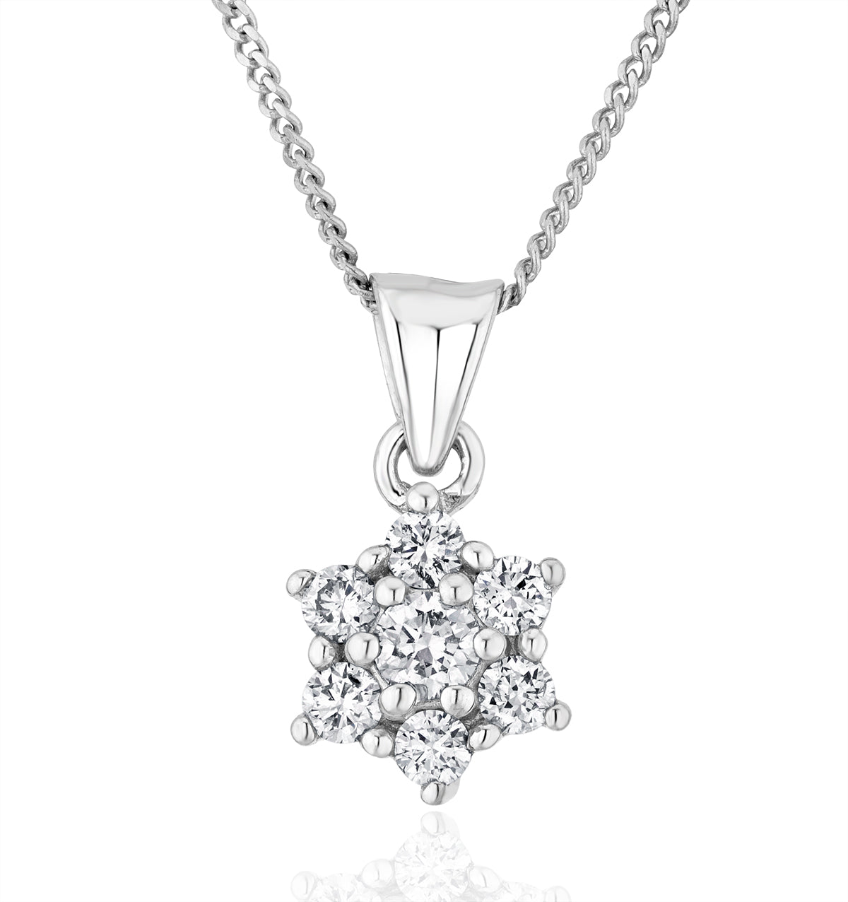 Lab Diamond Star Cluster Pendant Necklace 0.25ct H/Si 9K White Gold