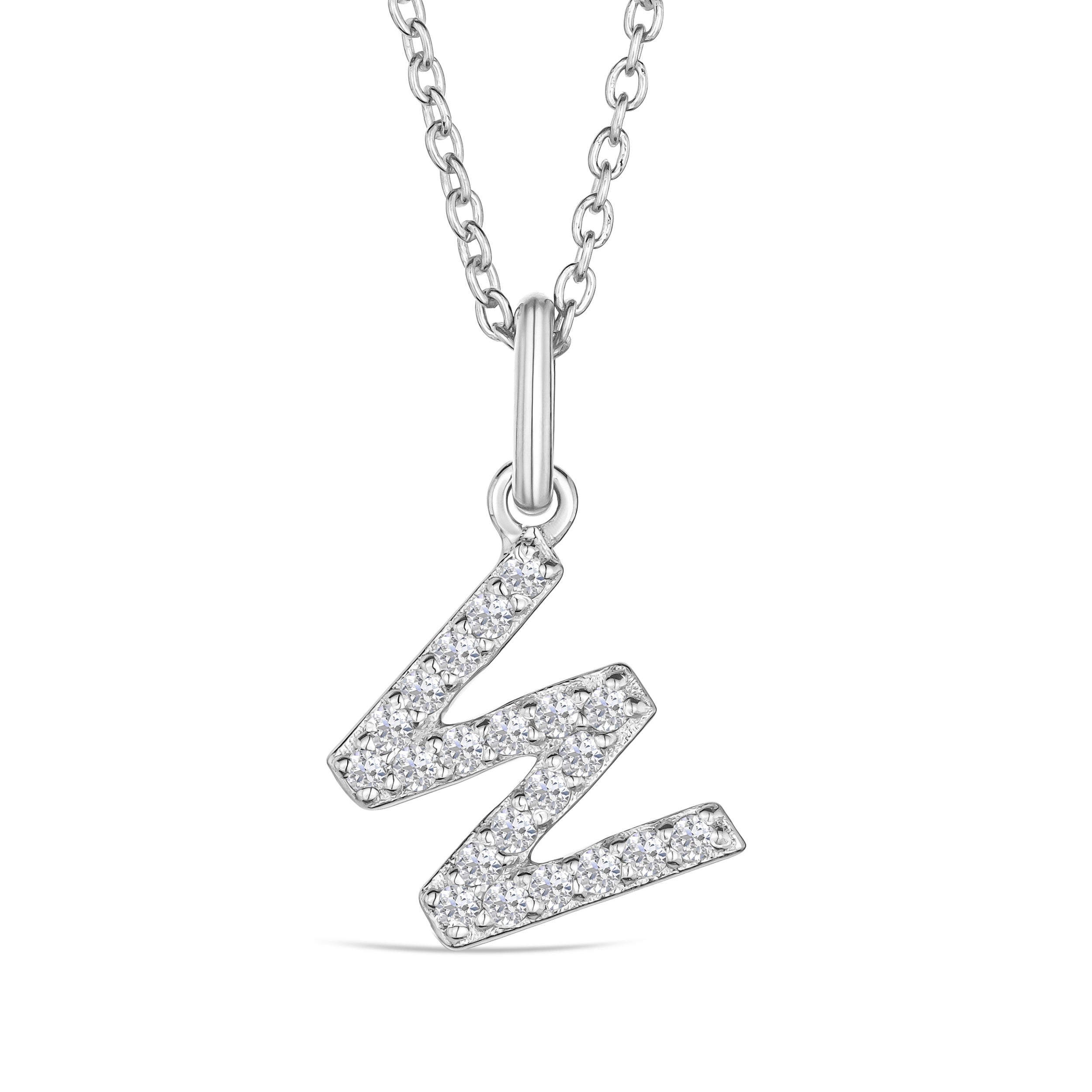 Love Letter Initial W Lab Diamond Necklace set in 925 Sterling Silver