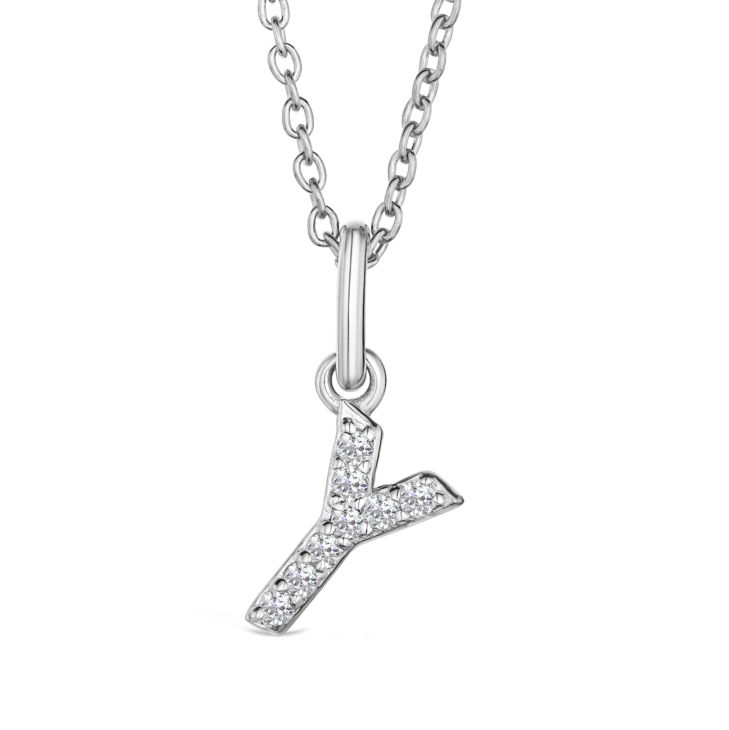 Love Letter Initial Y Lab Diamond Necklace set in 925 Sterling Silver