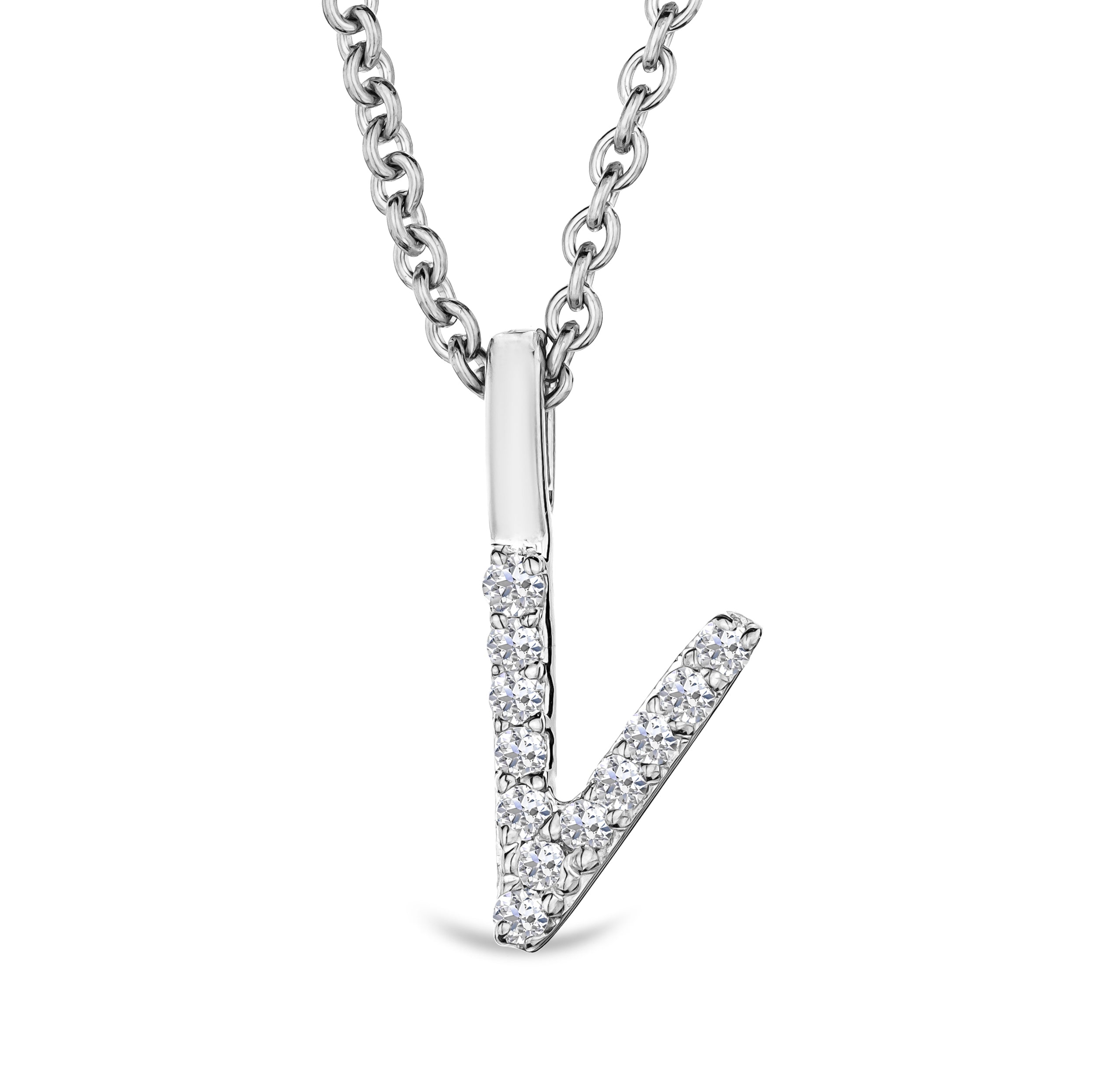 Love Letter Initial V Lab Diamond Necklace set in 9K White Gold