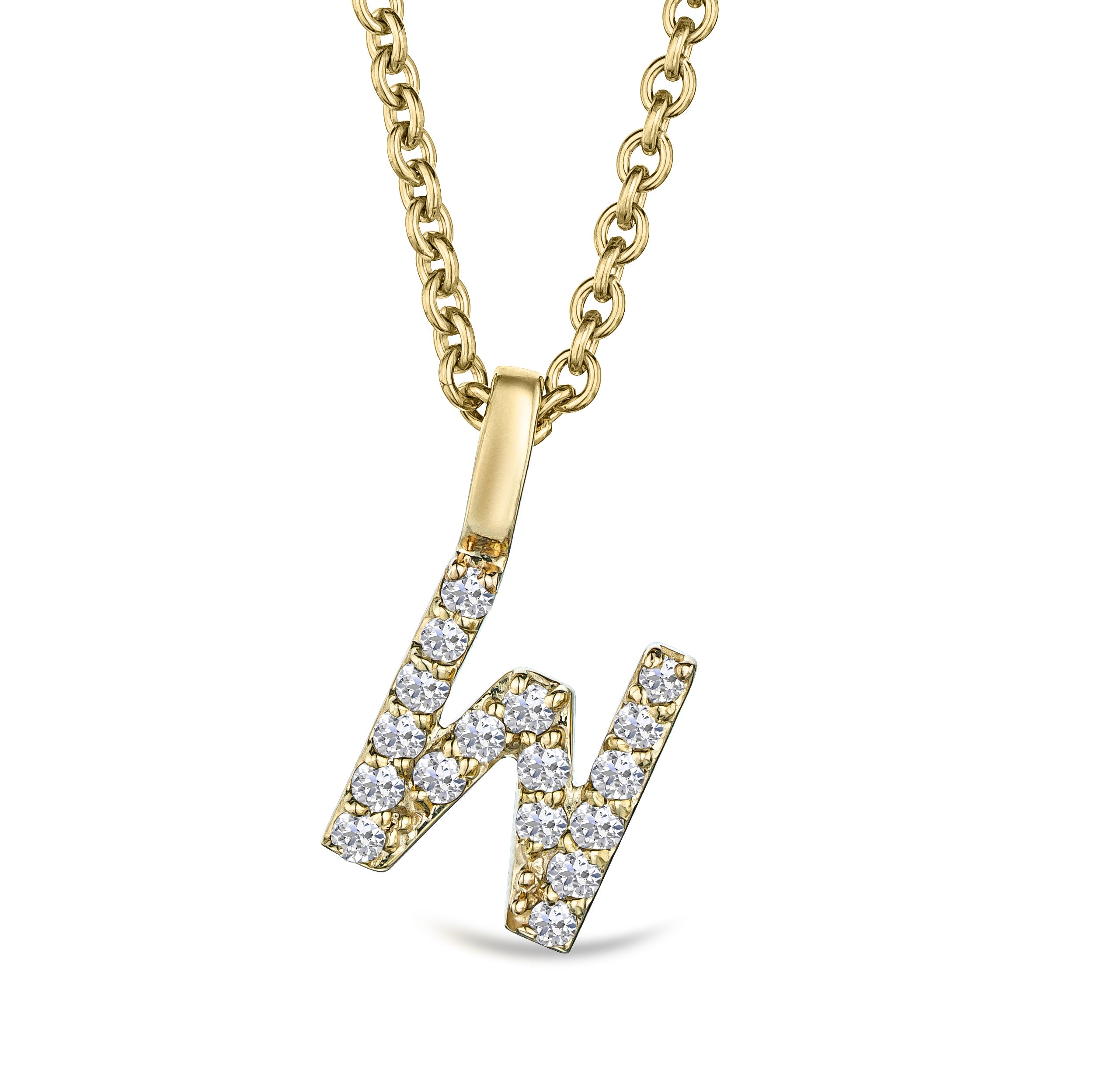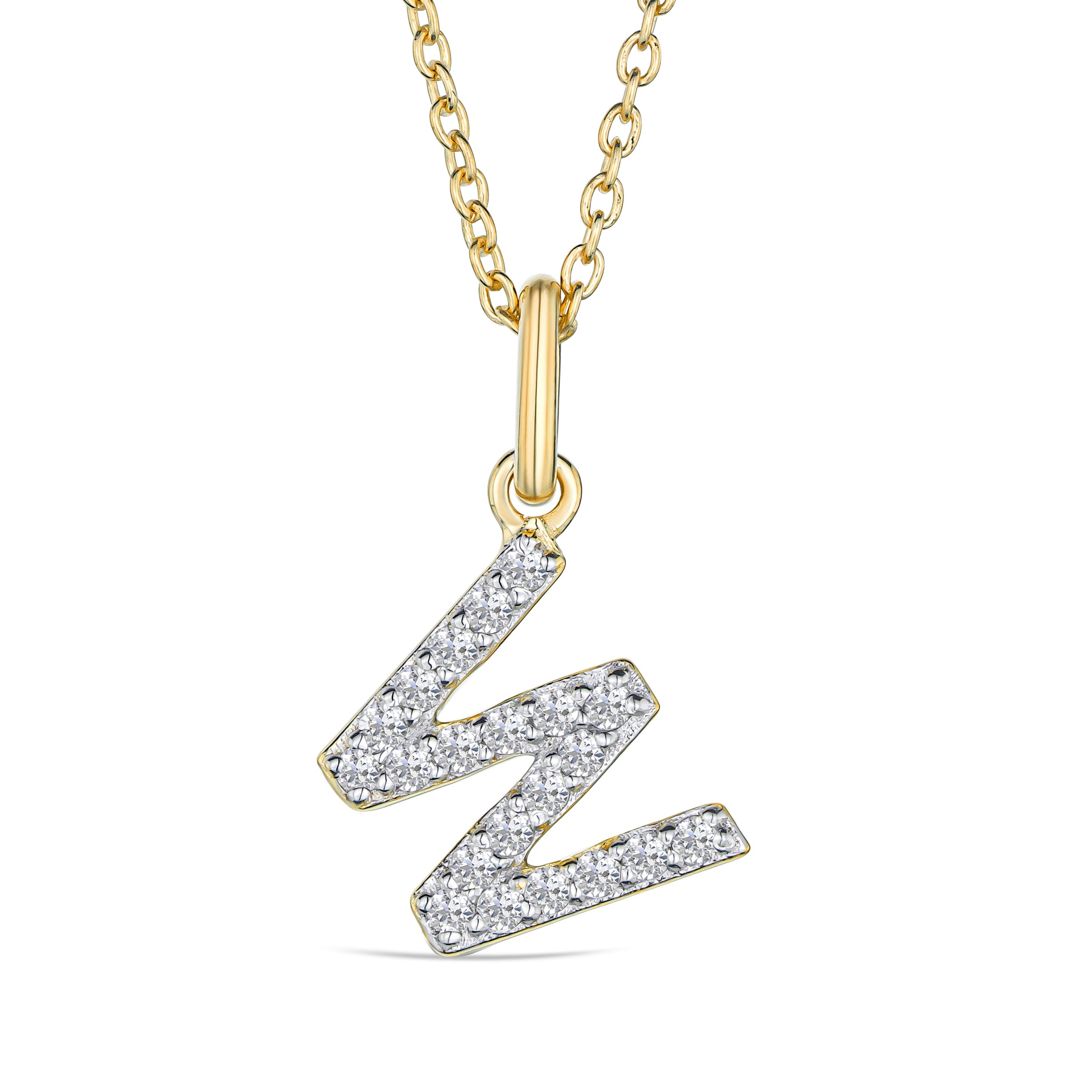 Love Letter Initial W Lab Diamond Necklace set in 9K Yellow Gold