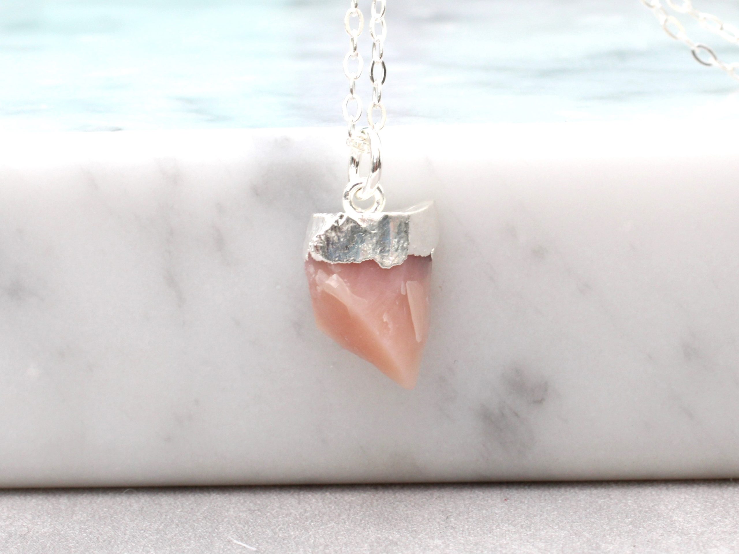 October birthstone necklace. Pink opal necklace.