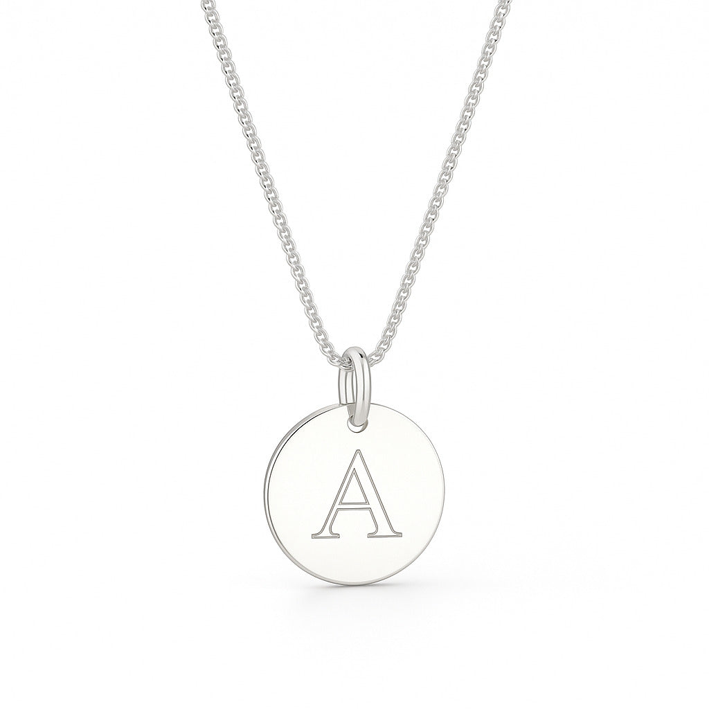 Personalised initial necklace in sterling silver.