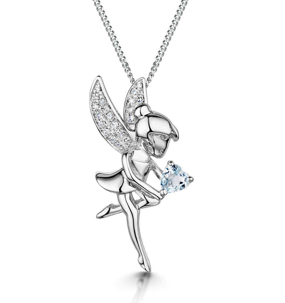Pixie Aquamarine and Diamond Stellato Pendant Necklace 9K White Gold