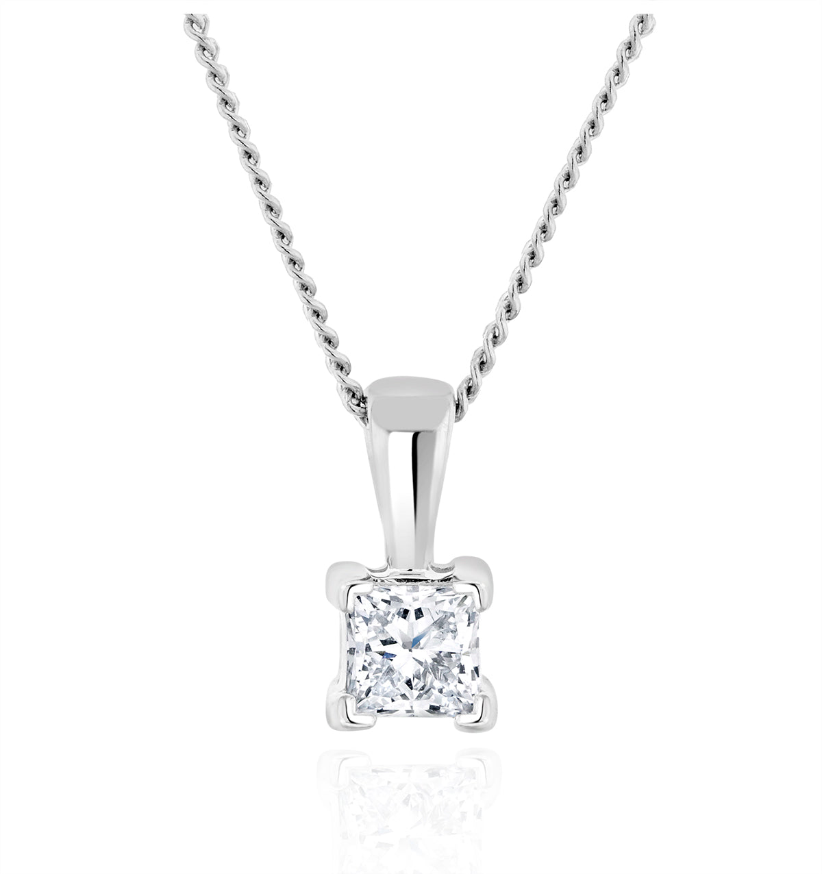 Princess Cut Lab Diamond Pendant Necklace 0.15CT in 9K White Gold