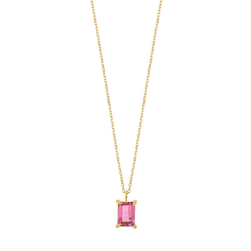Pink Tourmaline Necklace rectangular (18k Gold)