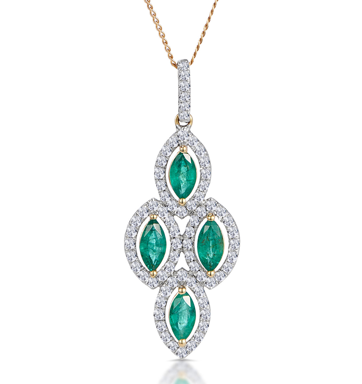 1ct Emerald Asteria Diamond Drop Pendant Necklace in 18K Gold