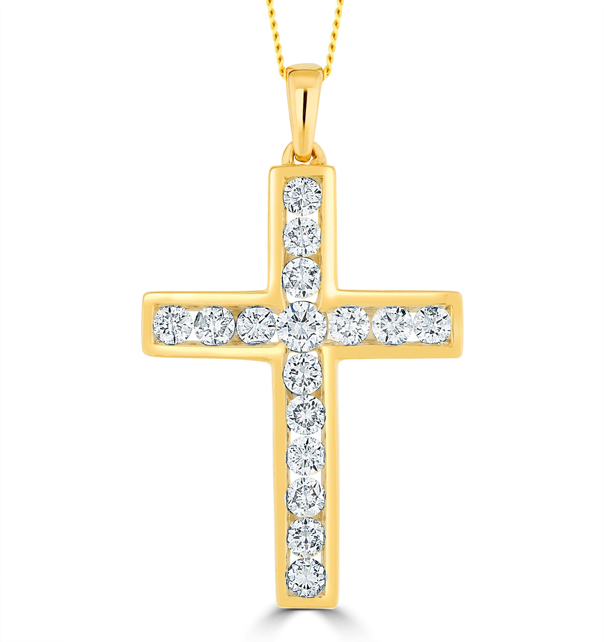 1ct Lab Diamond Cross Necklace Pendant H/Si Channel Set in 9K Gold