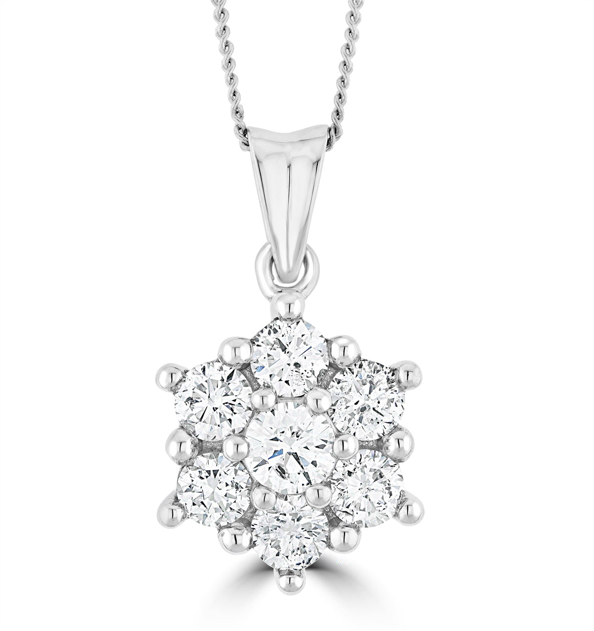 1ct Lab Diamond Cluster Necklace Pendant H/Si in 9K White Gold
