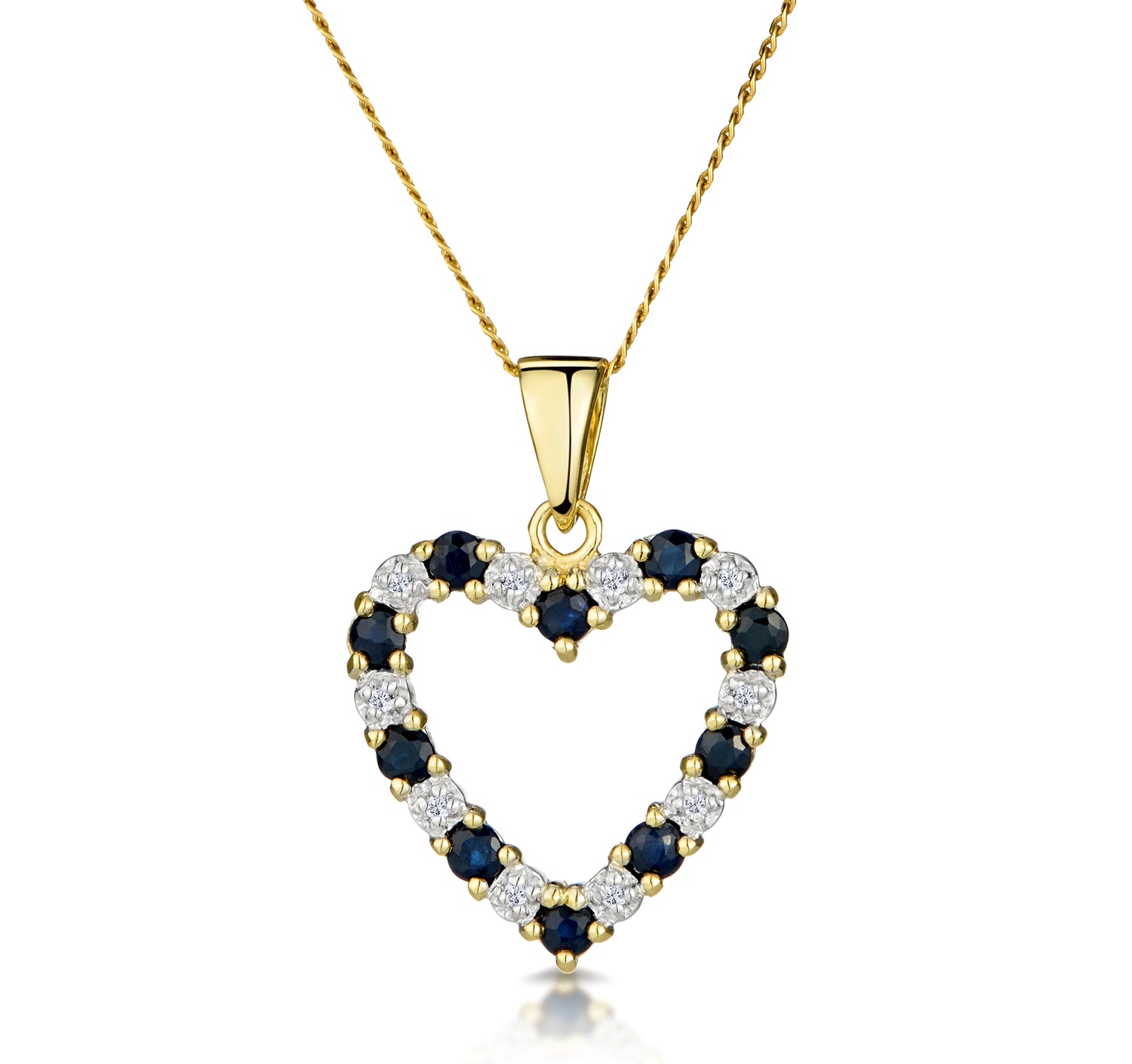 Sapphire And 0.03CT Diamond Heart Pendant Necklace 9K Yellow Gold