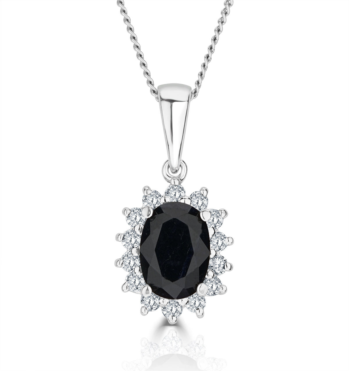 Sapphire 7 x 5mm And Diamond 9K White Gold Pendant Necklace