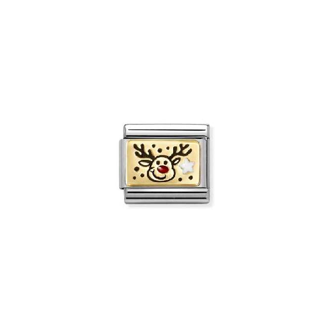 Classic Gold and Enamel Reindeer Red Nose Christmas Charms