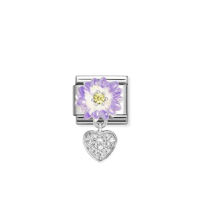 Classic Silver, Enamel and CZ Lilac Daisy with Dangly Heart Love & Hearts Charms