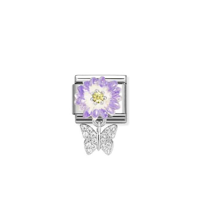 Classic Silver, Enamel and CZ Lilac Daisy with Dangly Butterfly Animals Charms