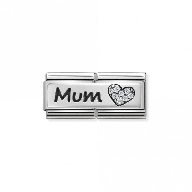 Silver and CZ Double Mum and Heart Friends & Family Charms