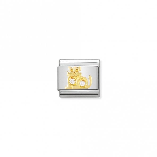 Classic Gold CZ White Cat Animal Charms