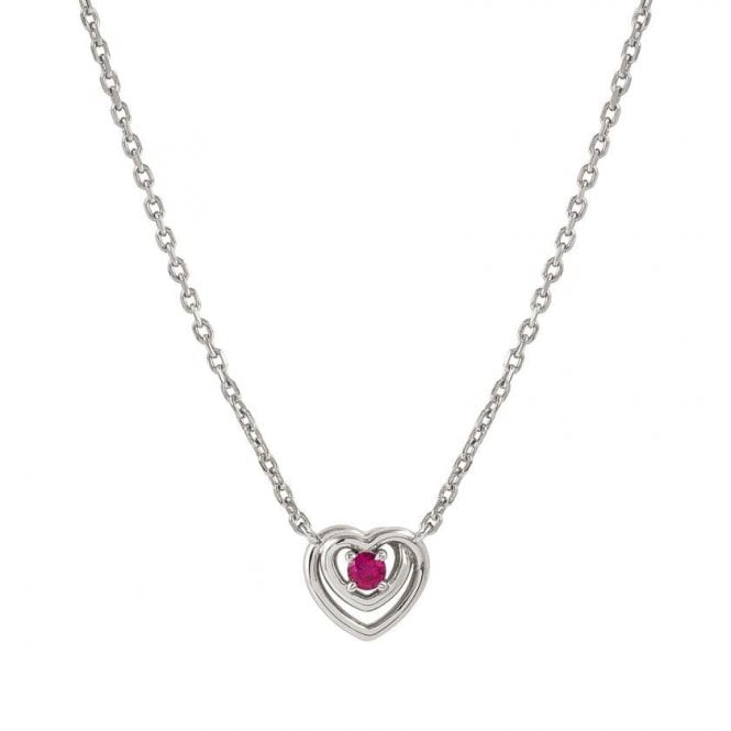 Cosmic Love Heart Necklace in Silver with Red CZ