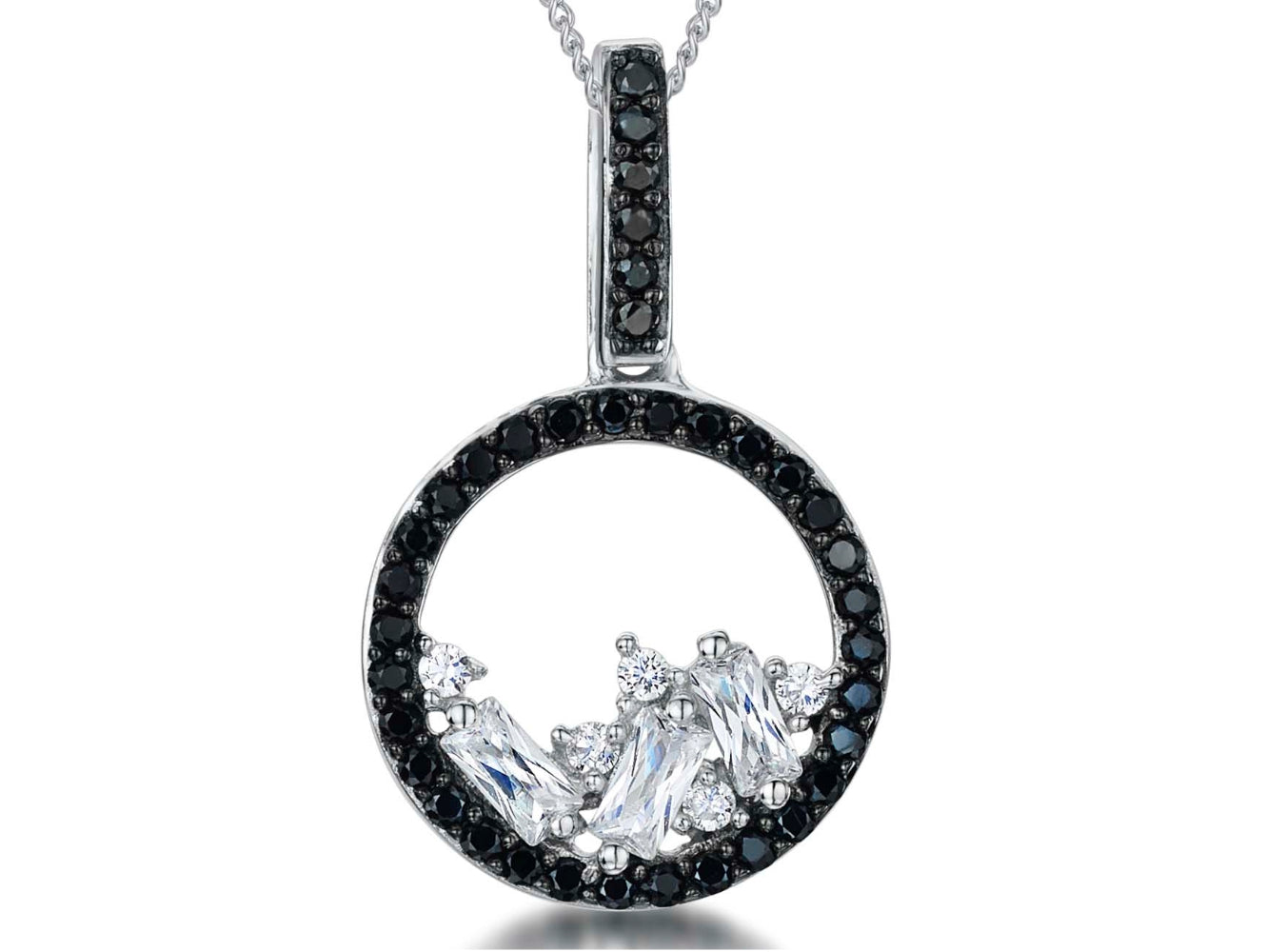 Sterling Silver Scattered Black Cubic Zirconia Pendant