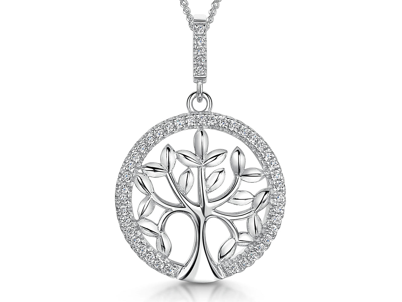 Sterling Silver Cubic Zirconia Tree Of Life Pendant