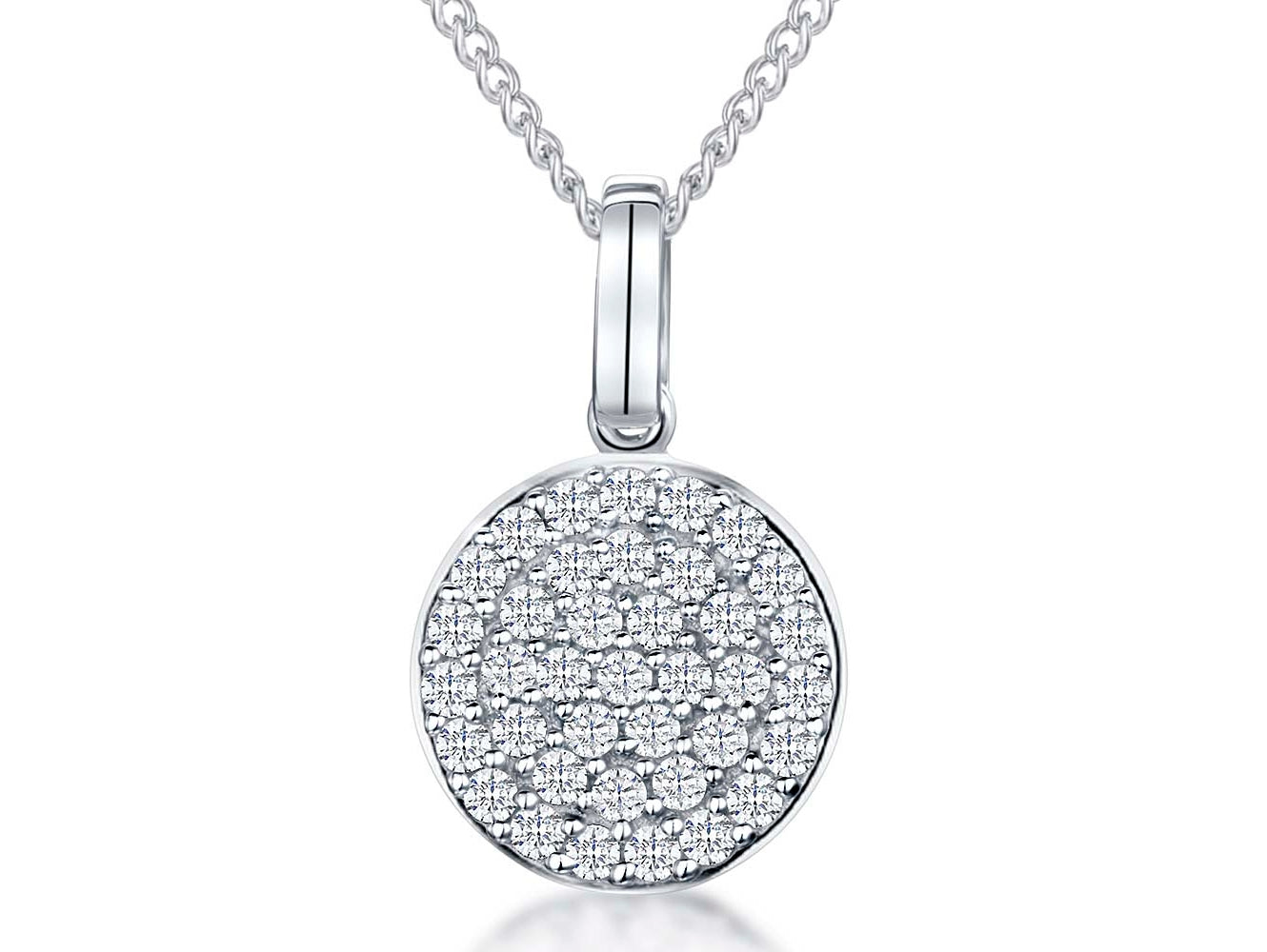 Sterling Silver Circle Pendant With Set Between Five Round Cubic Zirconia Stones