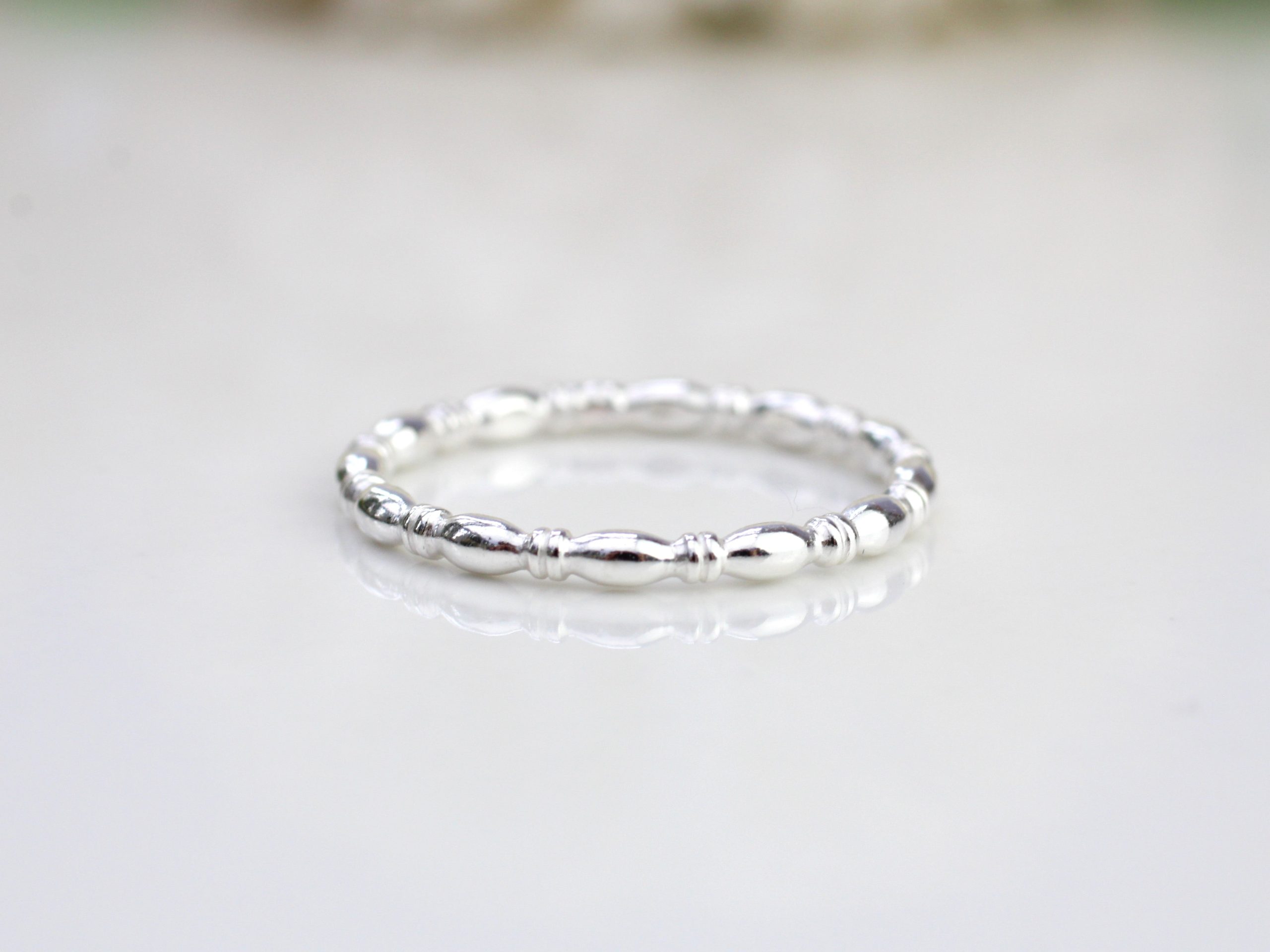 Oval beaded ring in silver.