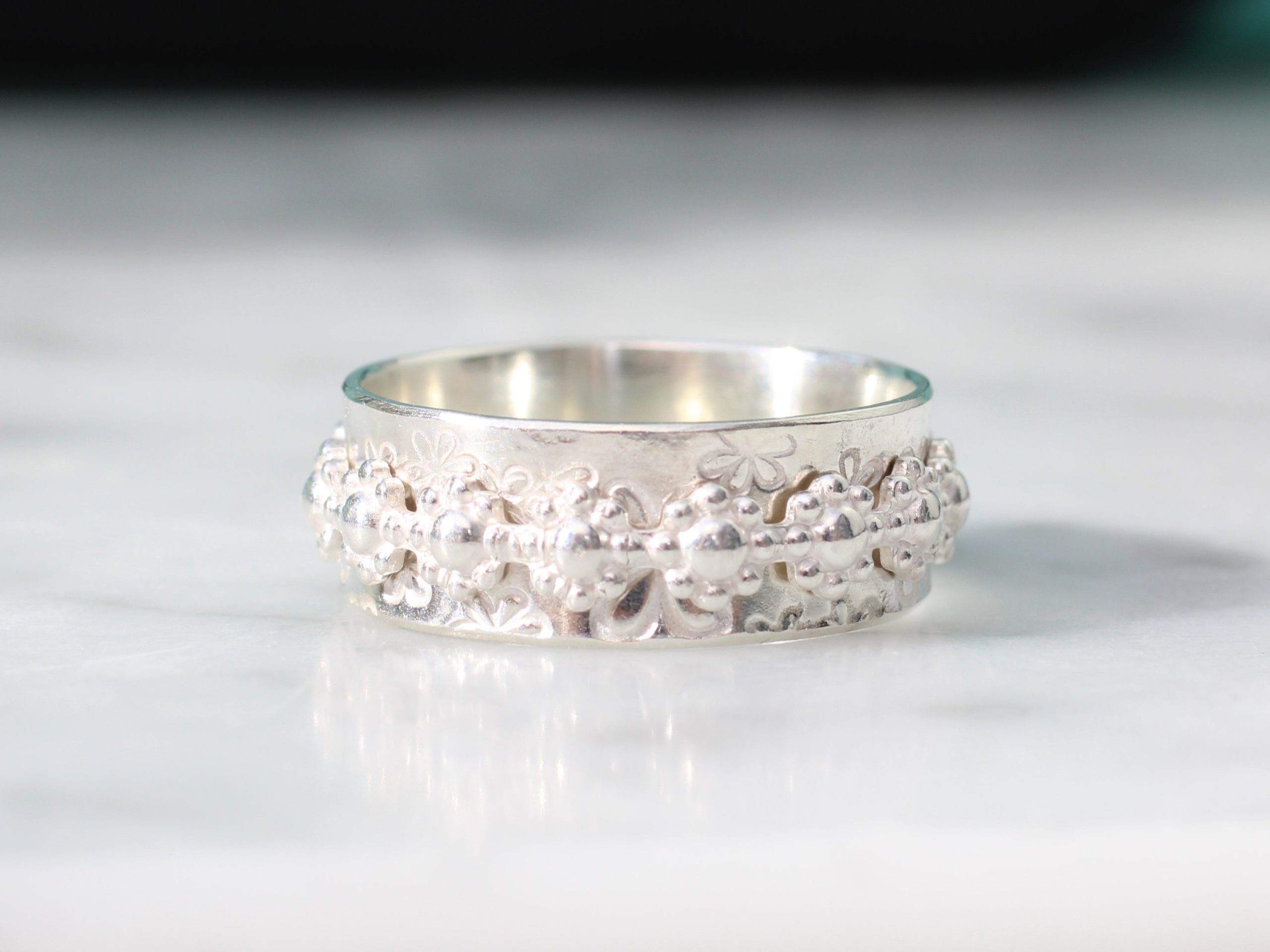 Sterling silver flower/daisy spinner ring. Fidget ring.