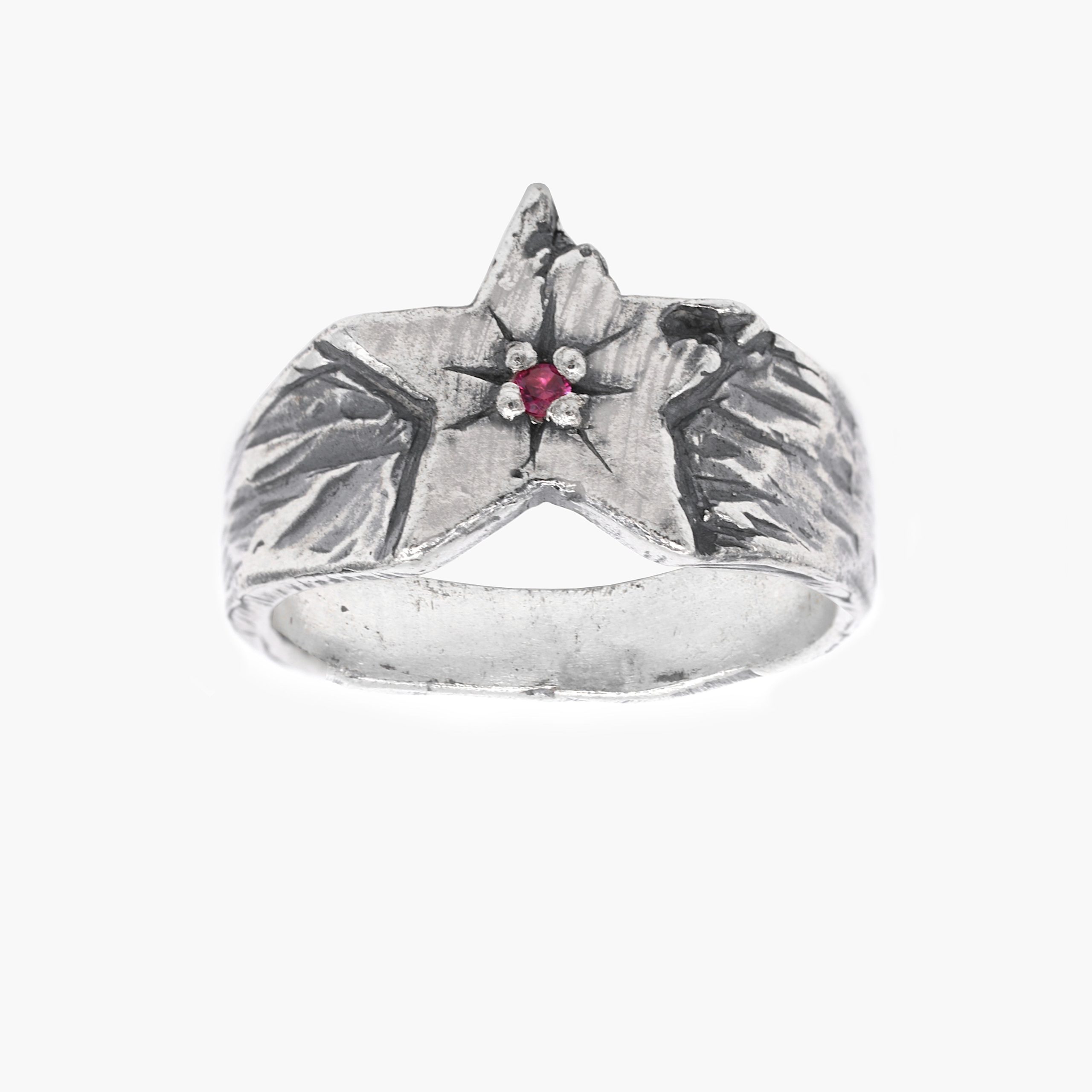Star Sterling Silver Ring With Red Garnet Stone