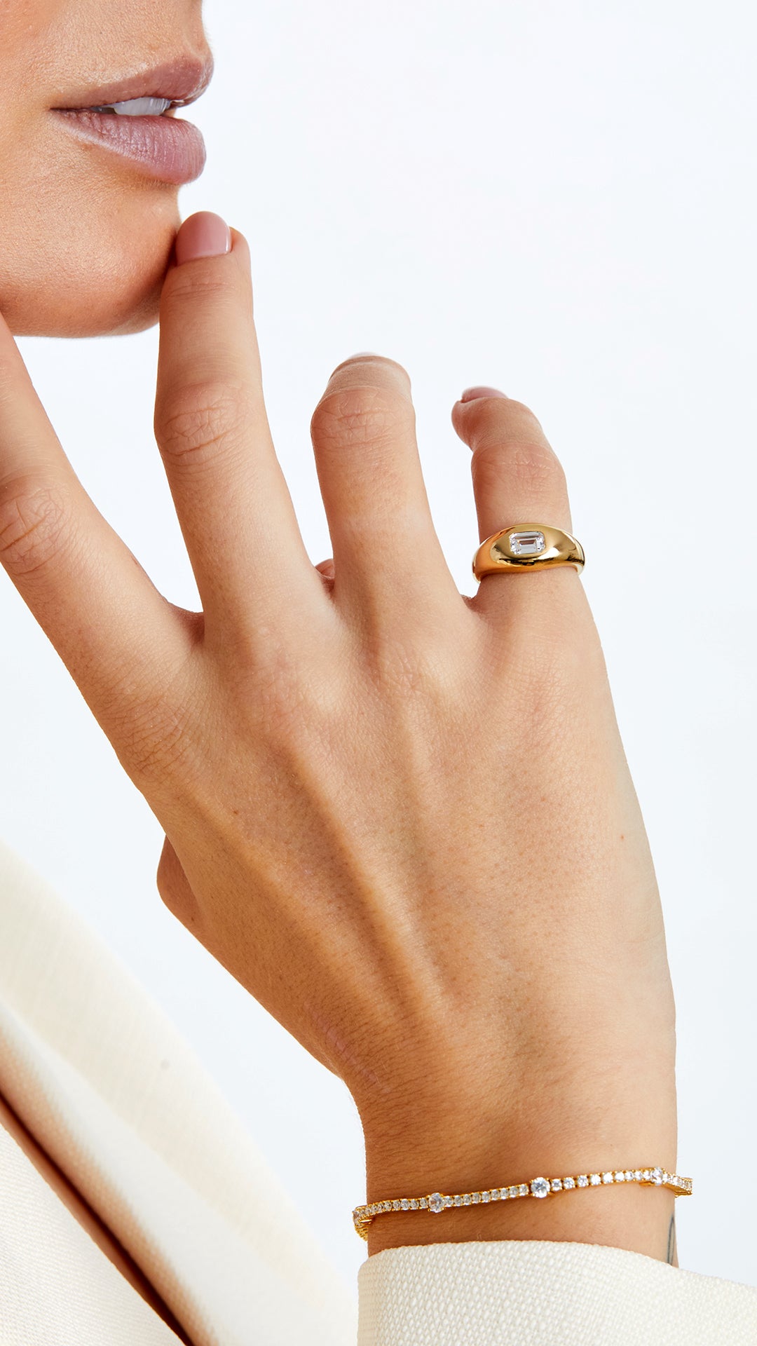 Texture Stainless Steel Cubic Zirconia 18k Gold Plated Ring