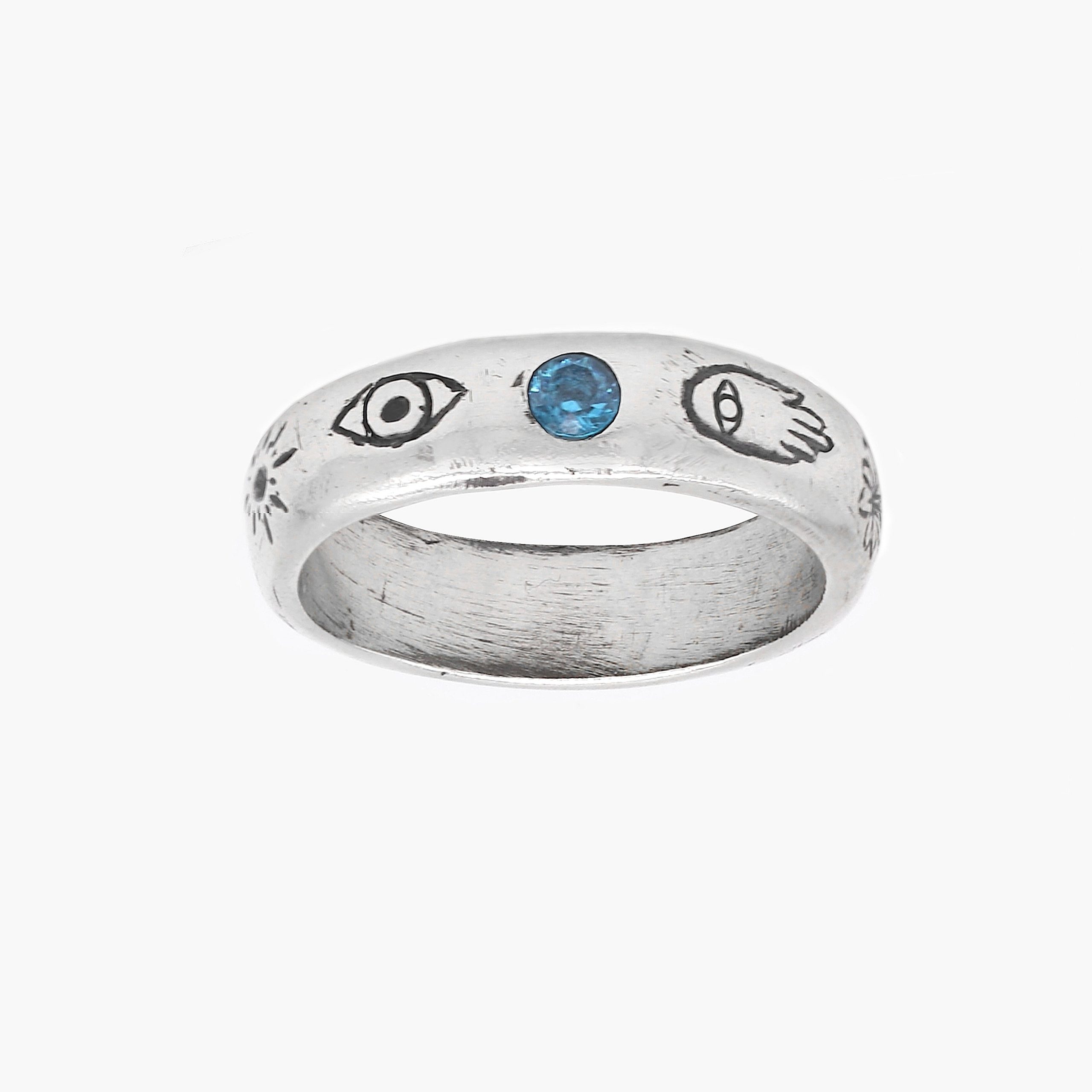 Symbols Signature Sterling Silver Ring With blue Sapphire