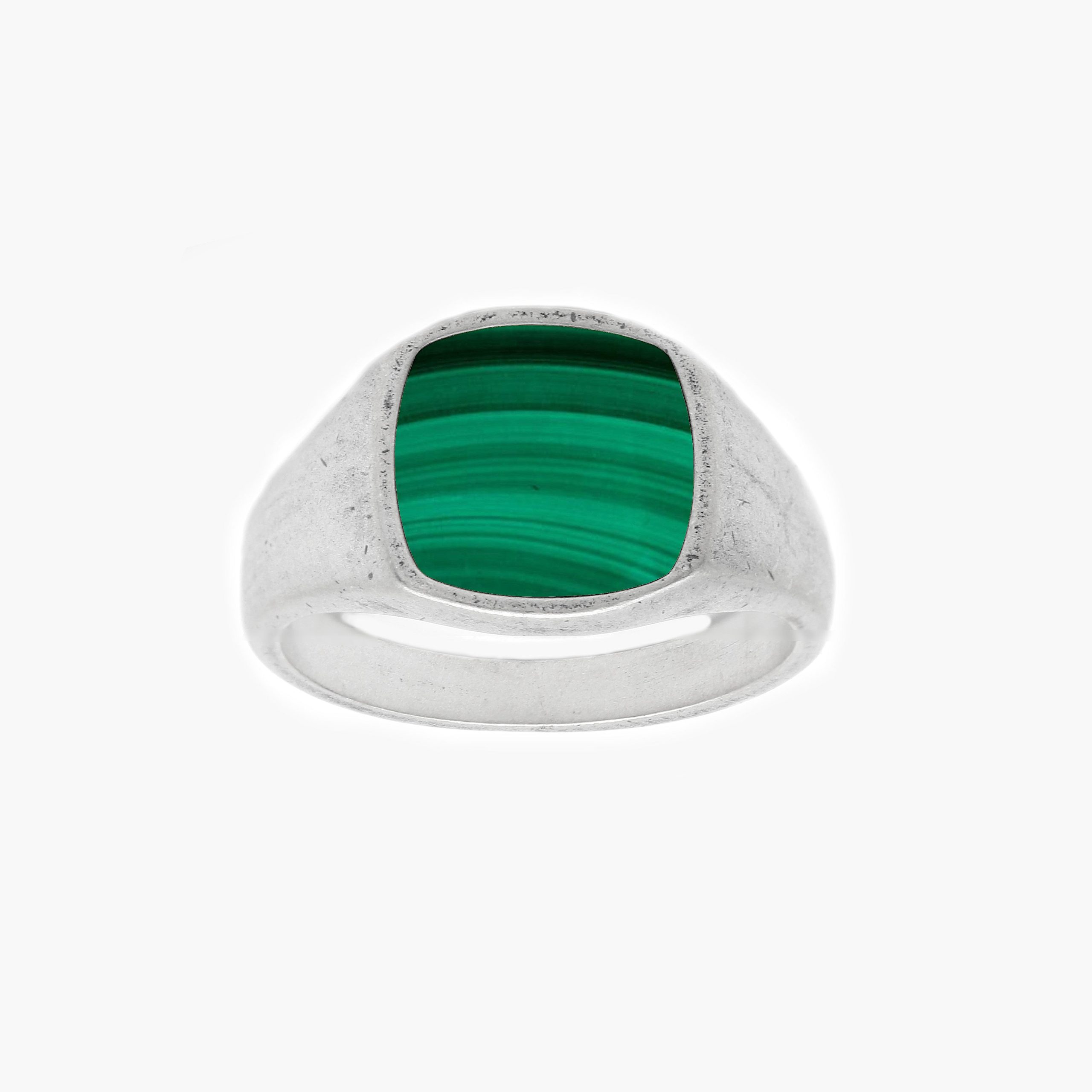 Cushion Signet Ring With Malachite Stone