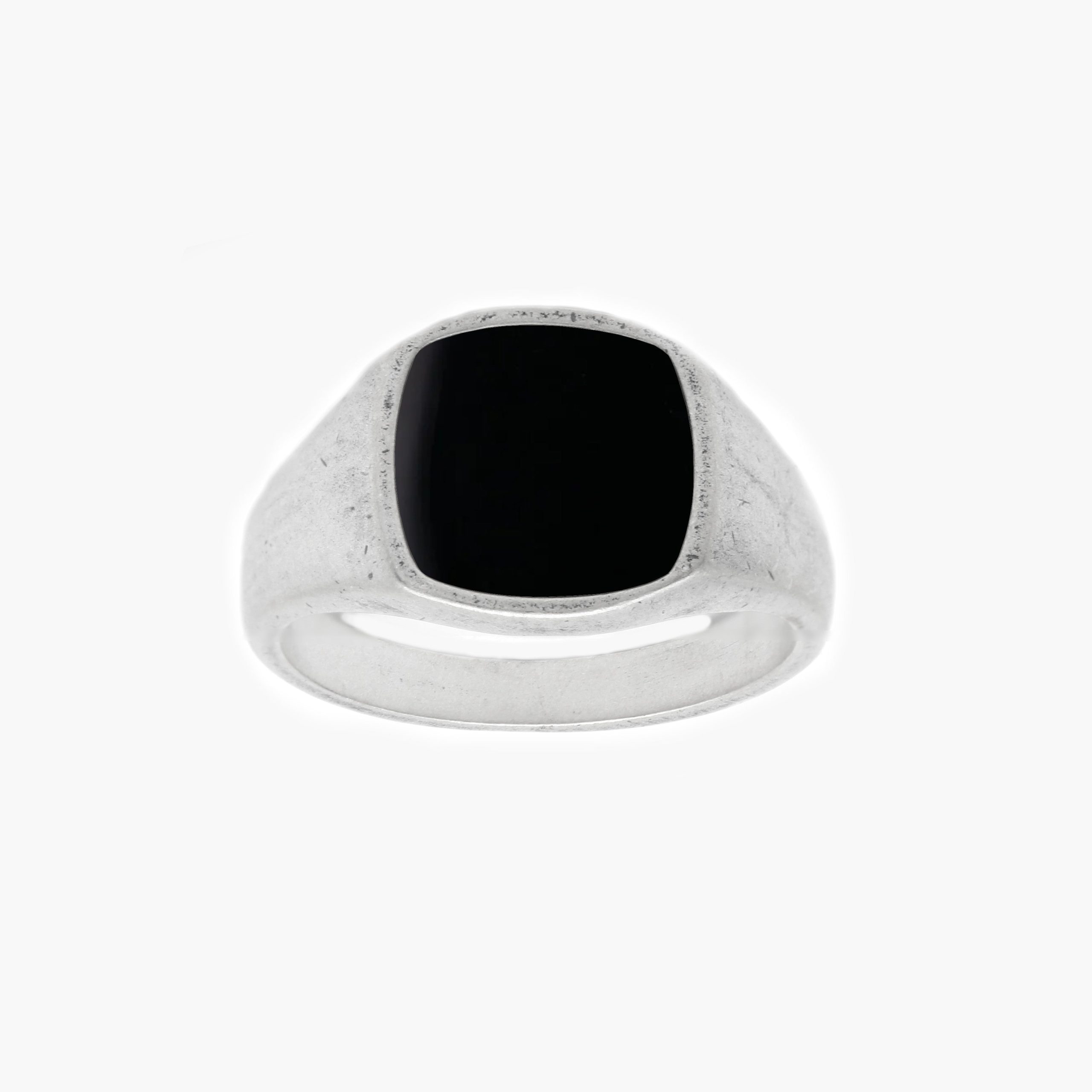 Cushion Signet Ring With Matte Onyx Stone