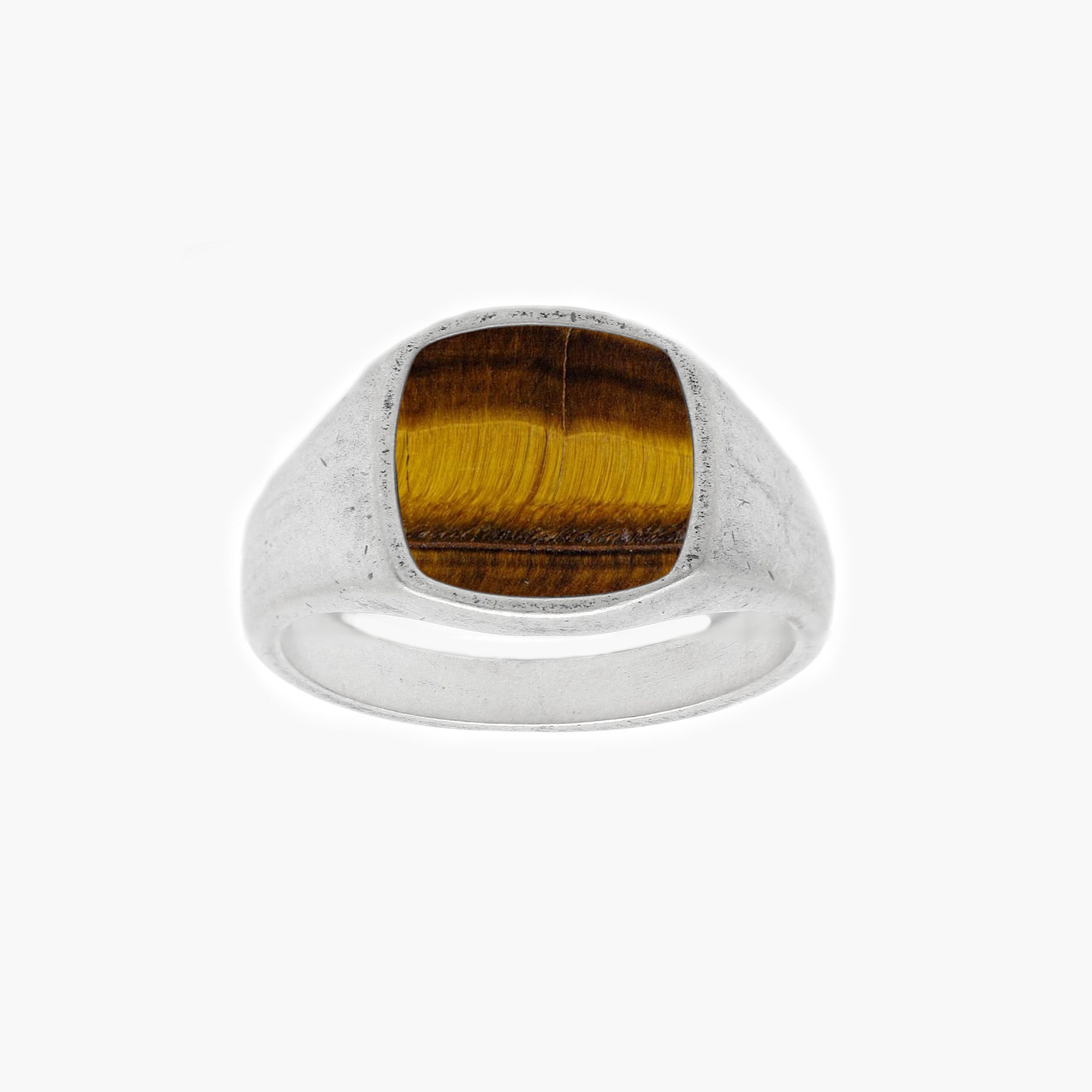 Cushion Signet Ring With Tiger Eye Stone