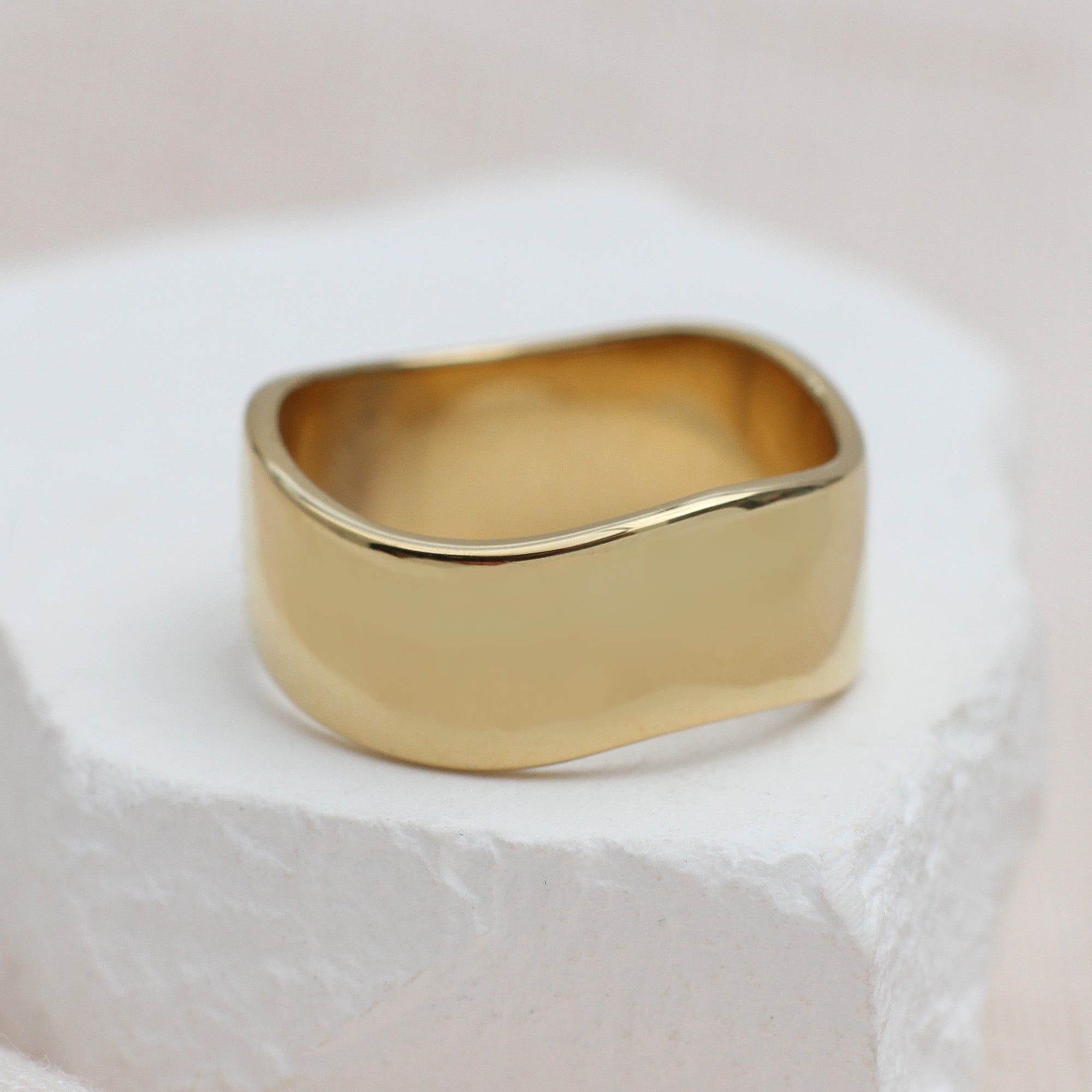 18ct Gold Plated or Sterling Silver Wide Wave Ring